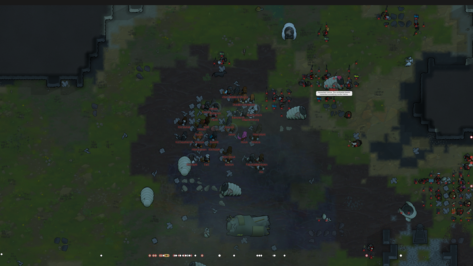 Убили 2 и спиздили 3 поселенцев (из 7) включая "главную(первую) пешку". Выжил только вампир который 4 раза "выпал" из рук людей которые его несли воровать из-за регена. И малышарик потому что она была настолько отхуячена помогатором-катафрактом что ходила как улитка и я ее даже выводить не стал на деф. В итоге под го-соком пытался вампира доспасти, отбили ногу нахуй.