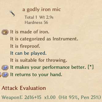 >>50606476 >В смысле два длинных меча из одного материала будут одинаковы +- рандомные свойства. Есть ещё один параметр, условно качество. То есть возможен ещё вариант меча из того же материала и с рандомными свойствами, но со звёздочкой в названии. У такого будет всего побольше. Плюс меч можно заточить свитком, воткнуть руну, благословить(правда тут я хз как оно влияет), и ещё есть какие-то 2 функции заточки на станке с полировкой(серой и фиолетовой хренью), но я так и не вкурил как оно работает.