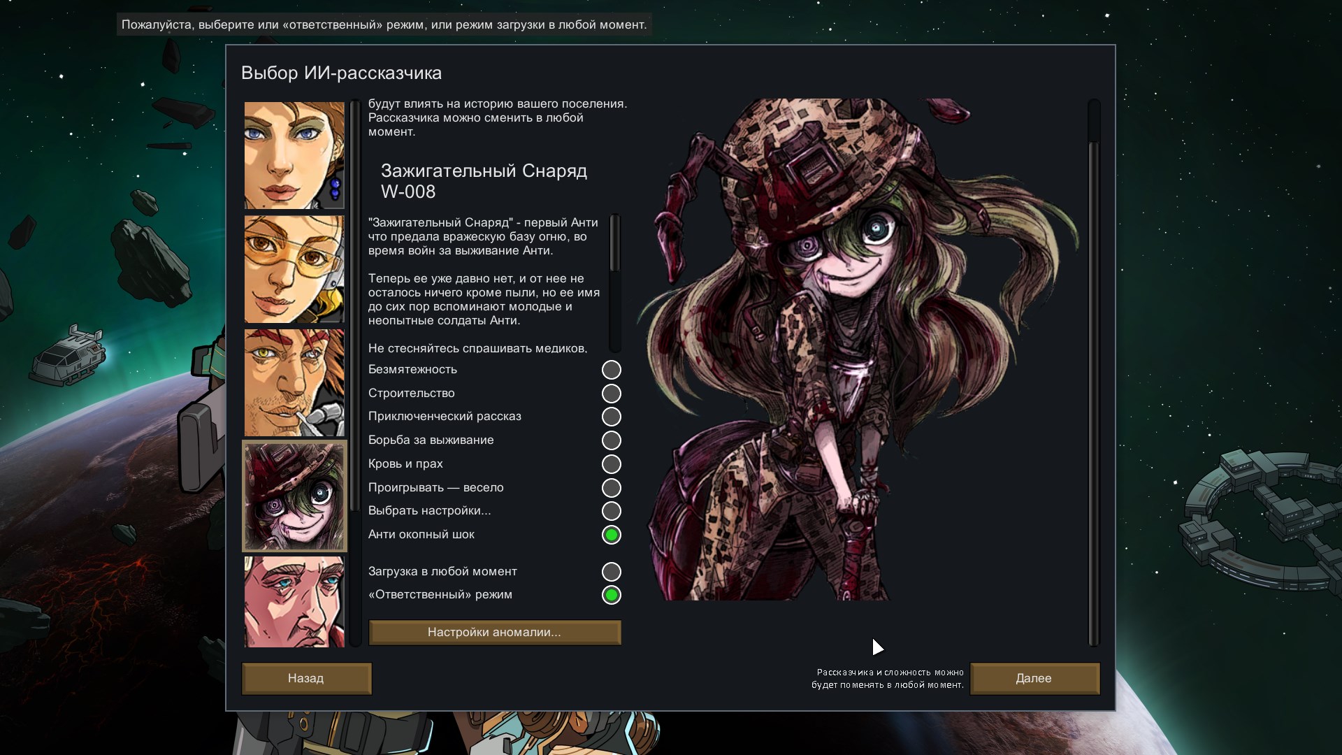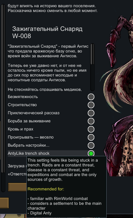 игра с загрузками Игра со специалистом по производству Дебаф муд от трупов отключены Закапывание в гору Всякие редакторы статов при роле пешек типа рандом плюс