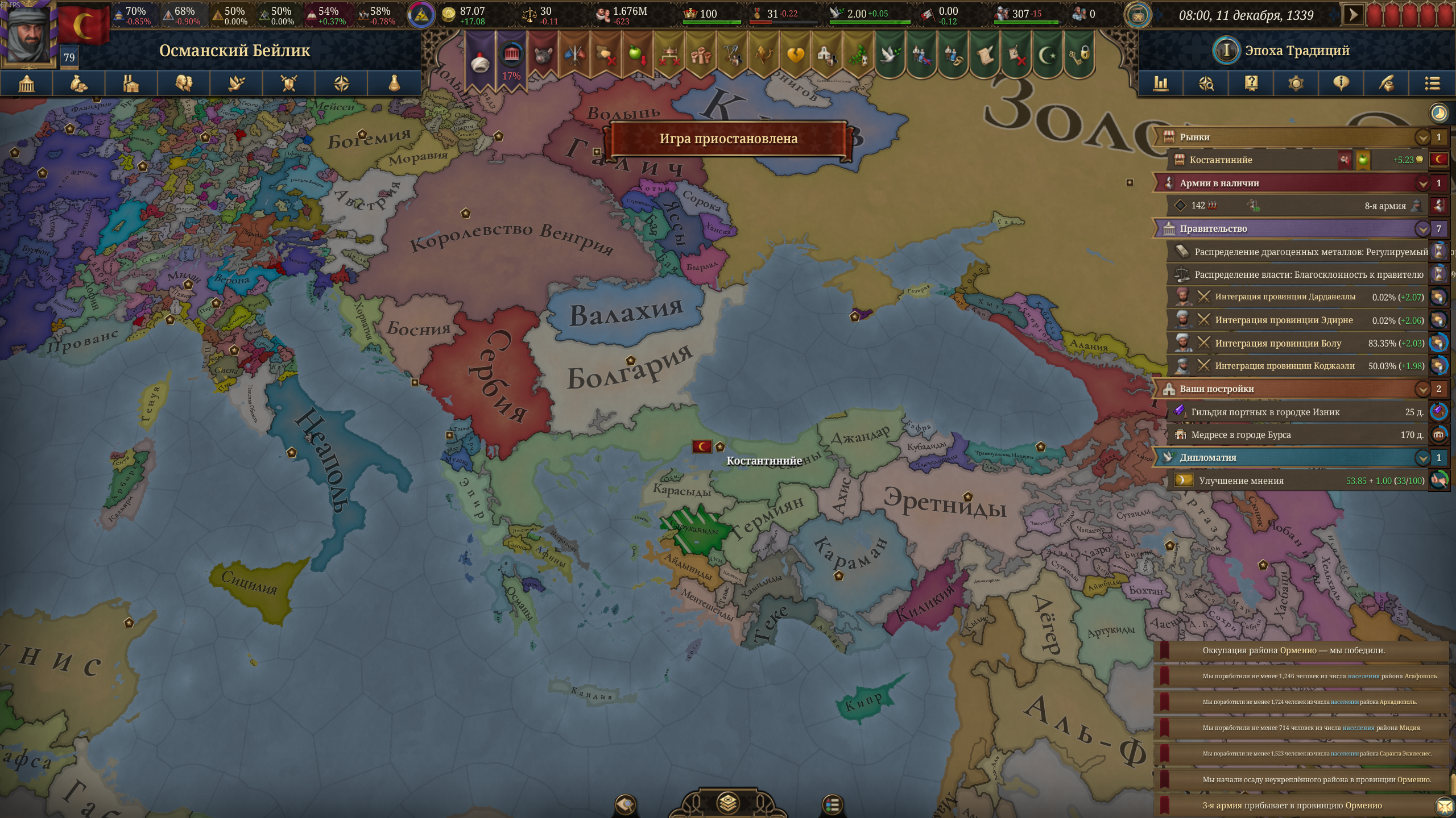 Чета нахуевертели парадоксы. Осман буквально на старте может уничтожить Византию + подчинить Эпир. И за время войны мне еще два соседних бейлика упали в ленники.