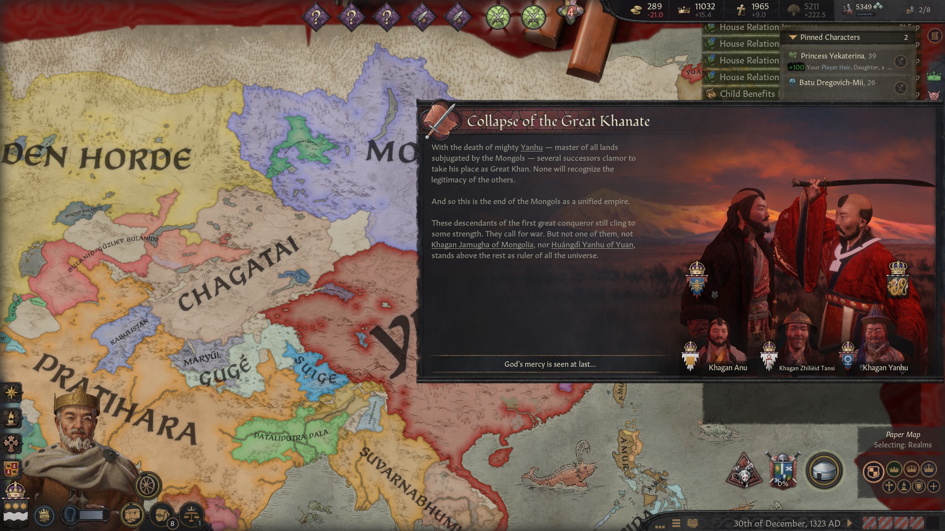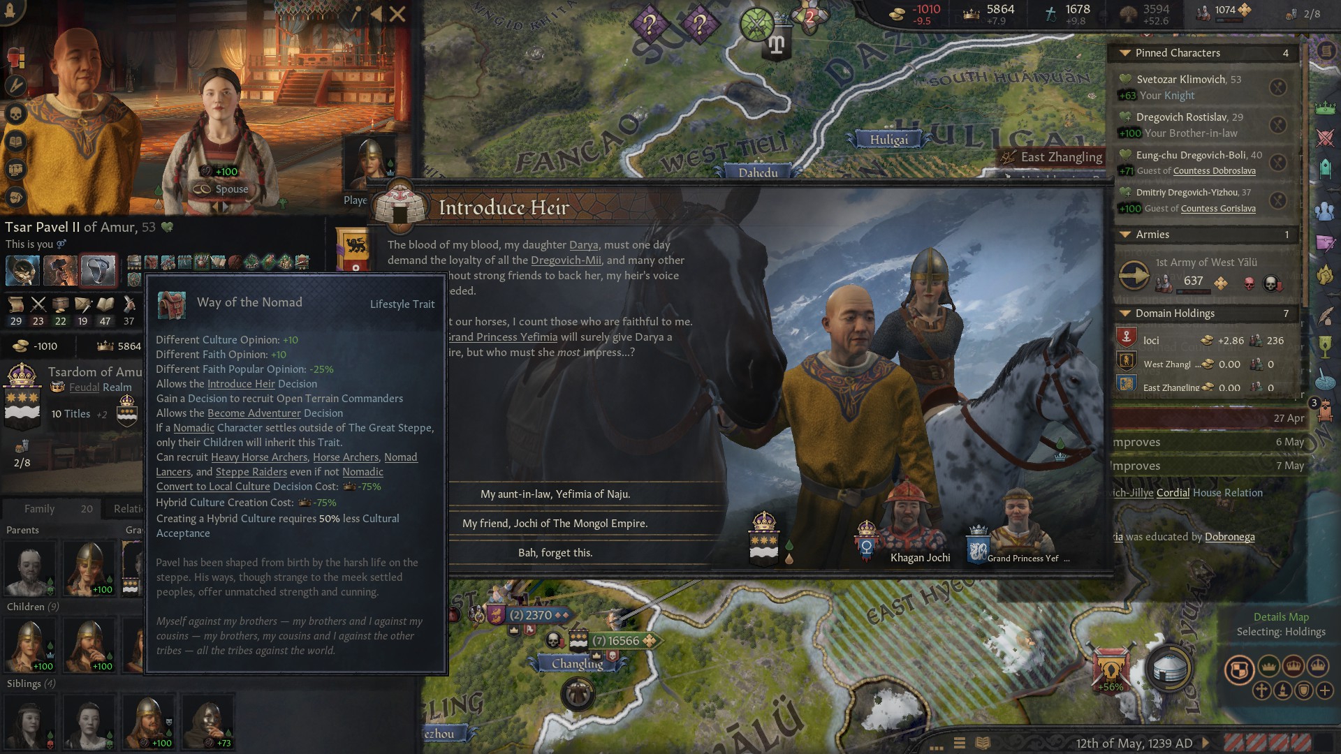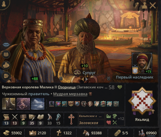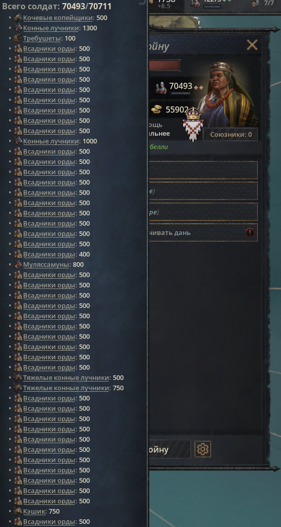 Внук-наследник шлялся хуй знает где, у него трейт пути Номада. Внезапно, можно с нихуя кинуть союз Джучи, царство временно застраховано от лялямбы! Жаль у сына Джучи уже есть братуха, приходится по старинке слать заложников. Корейский братишка, ты зачем самоубился?