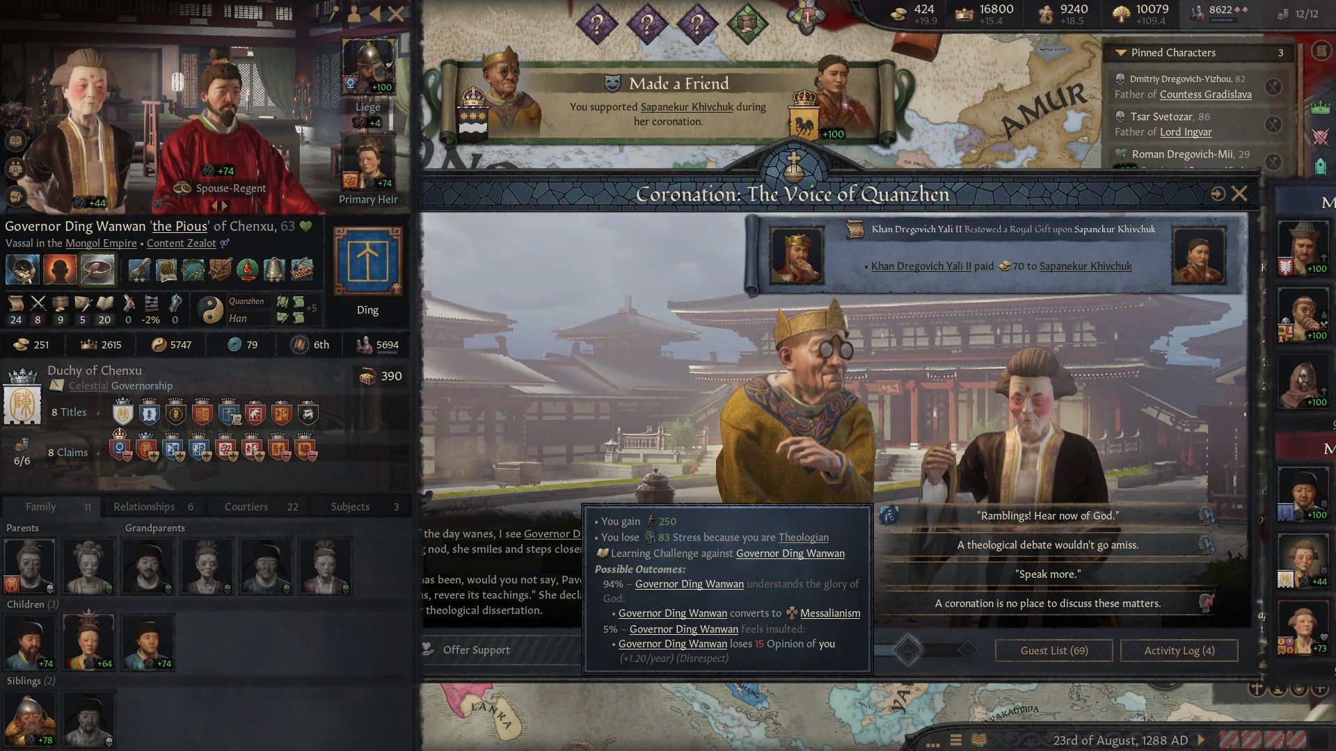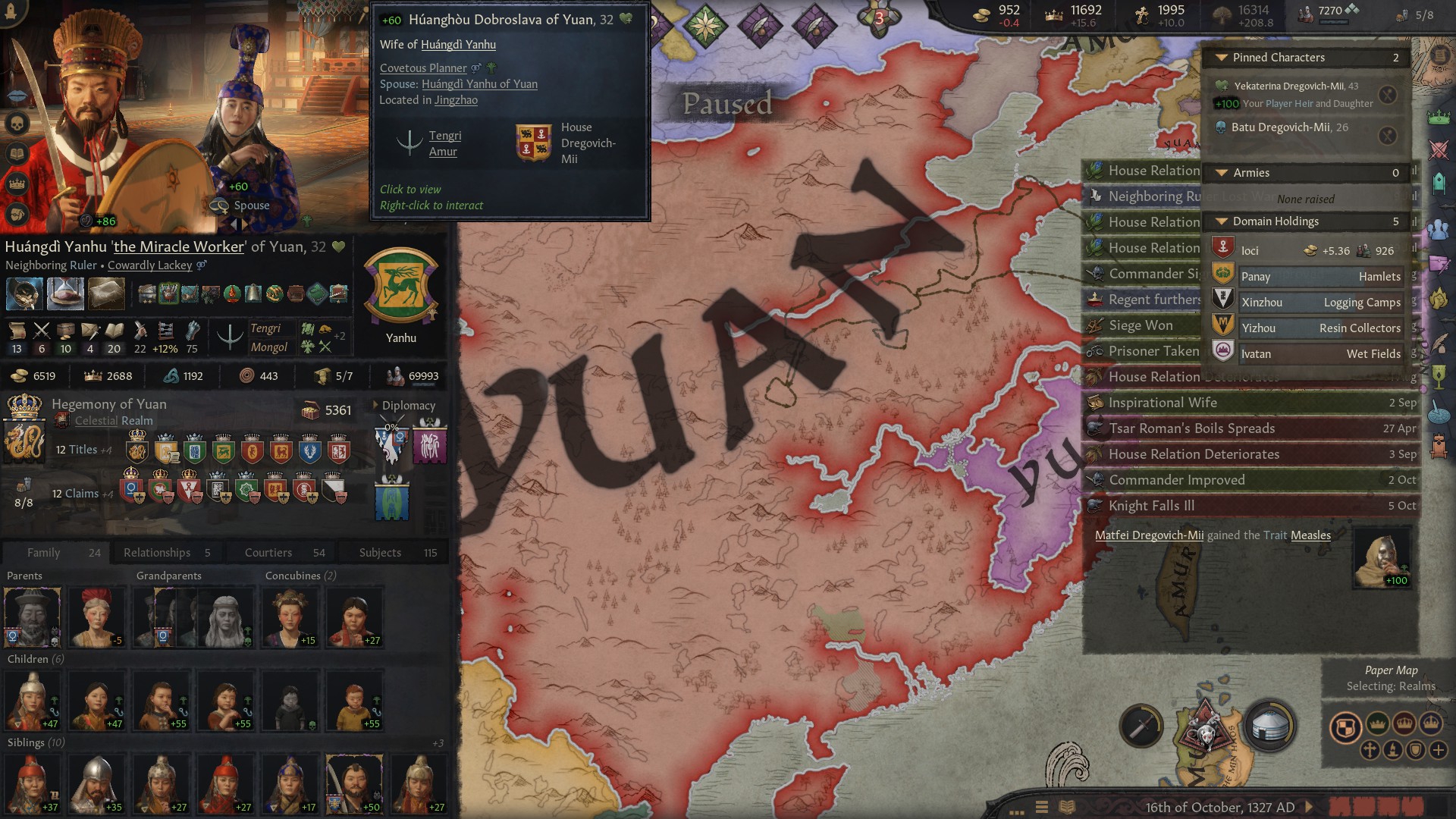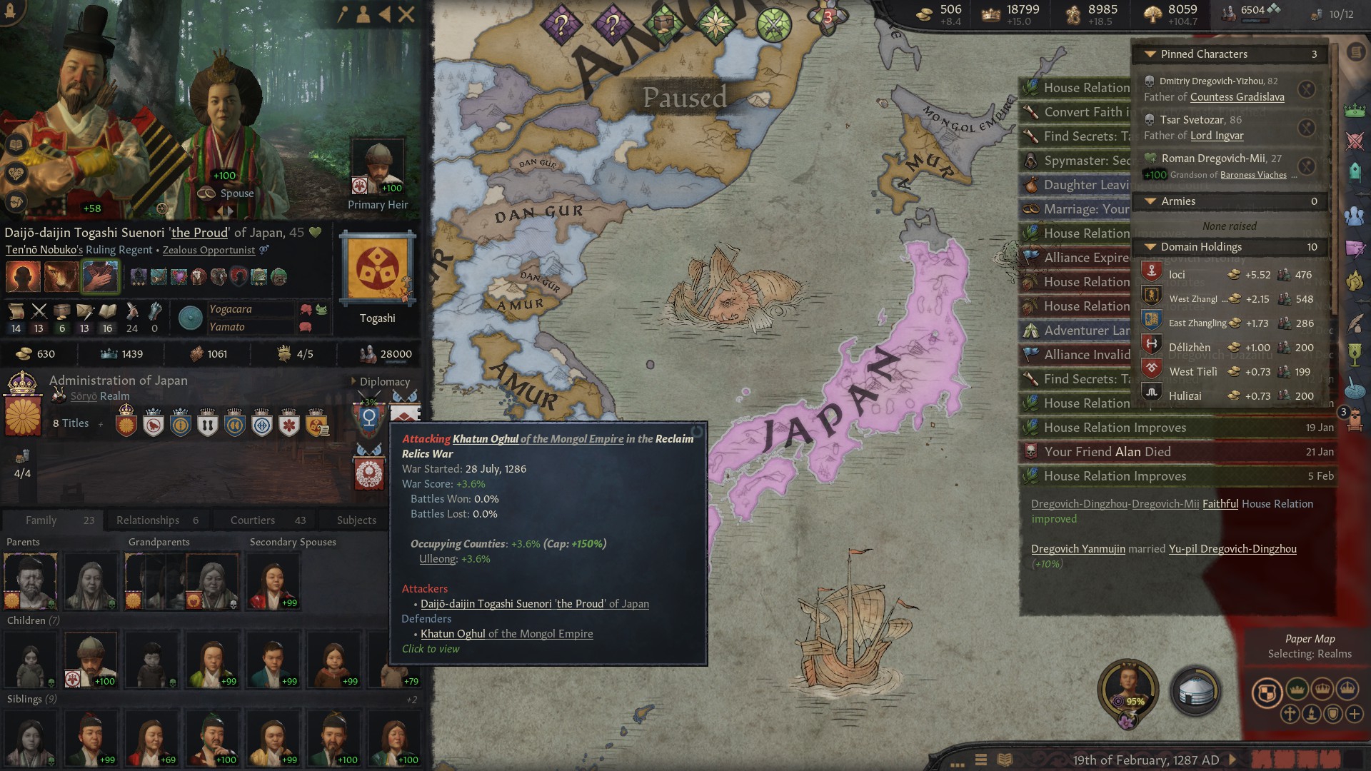 Внук-наследник шлялся хуй знает где, у него трейт пути Номада. Внезапно, можно с нихуя кинуть союз Джучи, царство временно застраховано от лялямбы! Жаль у сына Джучи уже есть братуха, приходится по старинке слать заложников. Корейский братишка, ты зачем самоубился?