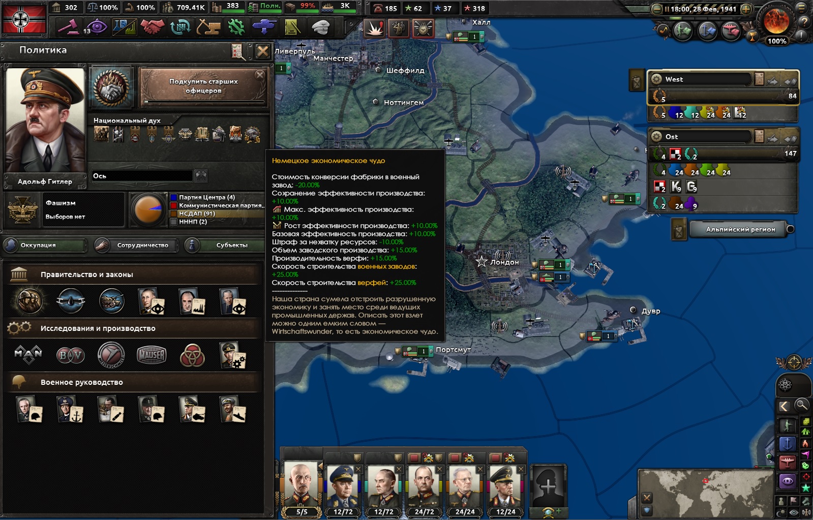 В общем, пришлось делать Зеелёве, чтобы решить проблему с МЕФО. Но капитуляция британцев привела к тому, что появилась куча ресов и возможность достичь Автаркии. ИИшка естественно такое никогда не сможет сделать и поэтому неудивительно, что сейчас Германия проигрывает войну уже в 1941. Криворукие пердоходы походу даже не запускают свою игру и не тестируют.