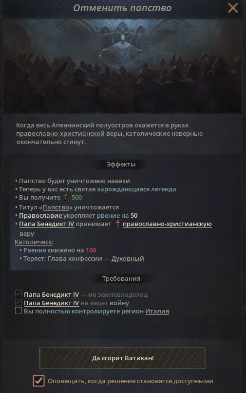 Не могу активировать Решение. Это из за мальты? Почему я не мог узурпировать титул, ведь 4 из 5 территорий под моим руководством. Войну объявлять никак, там кочевники пришли в Африку, они мне пиздов выпишут. К тому же у меня с ними союз.
