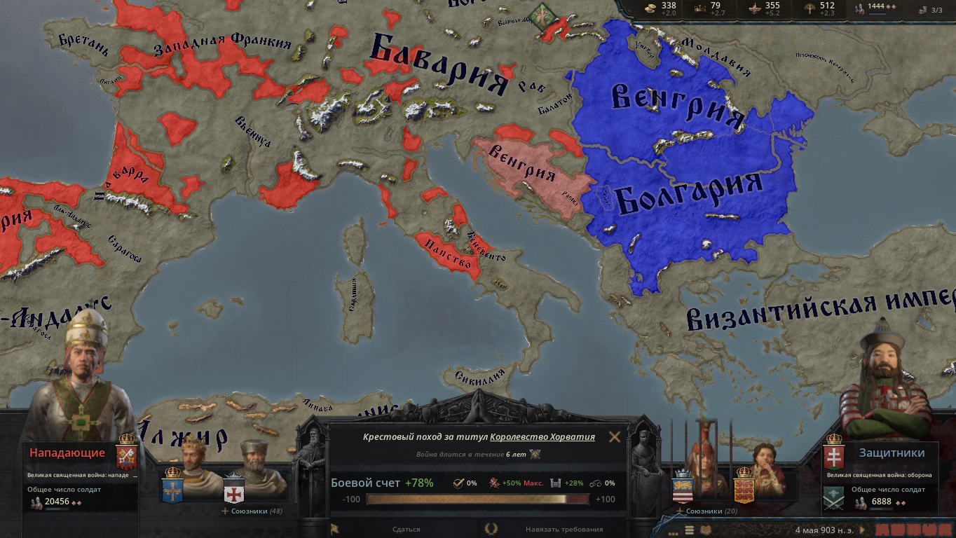а тут у меня бот на папе крусейд за хорватию запалил, так как там венгрия. Это вообще странно так как для католиков там вообще нет святых мест и венгрия традиционно расширяется на балканы. Алсо, вместе с ней тенгрианская Болгария так как правят ней потомки того сына Бориса язычника который в стартовой дате воевал против мадьяр. Такой-то урало-тюркский тенгриано-талташистский союз лол.