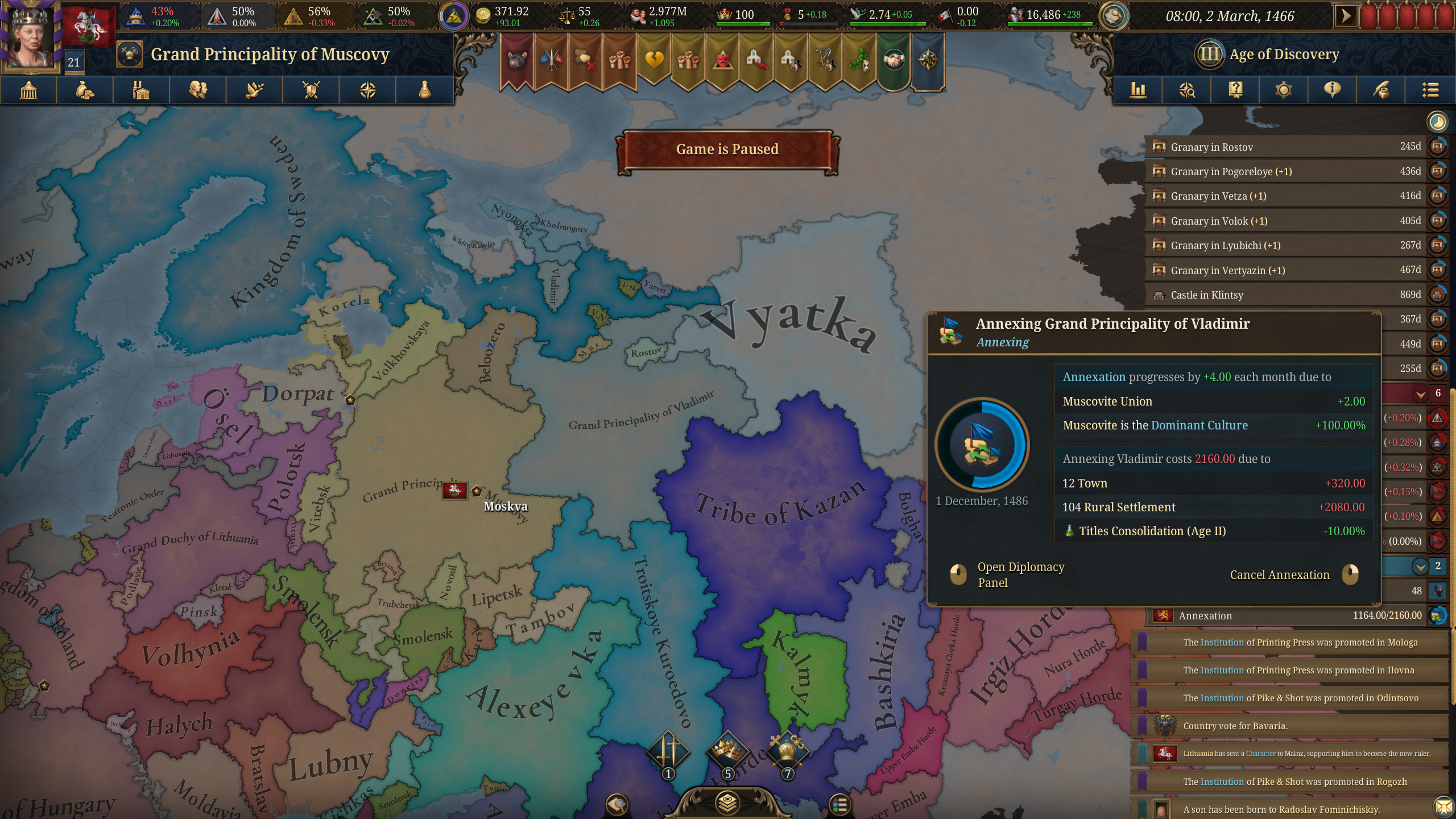 Хотя у меня игра, кажется, забаговалась, потому что в счете "восхождения" указаны несуществующие бейлики. Или это потому что я не интегрировал те земли?