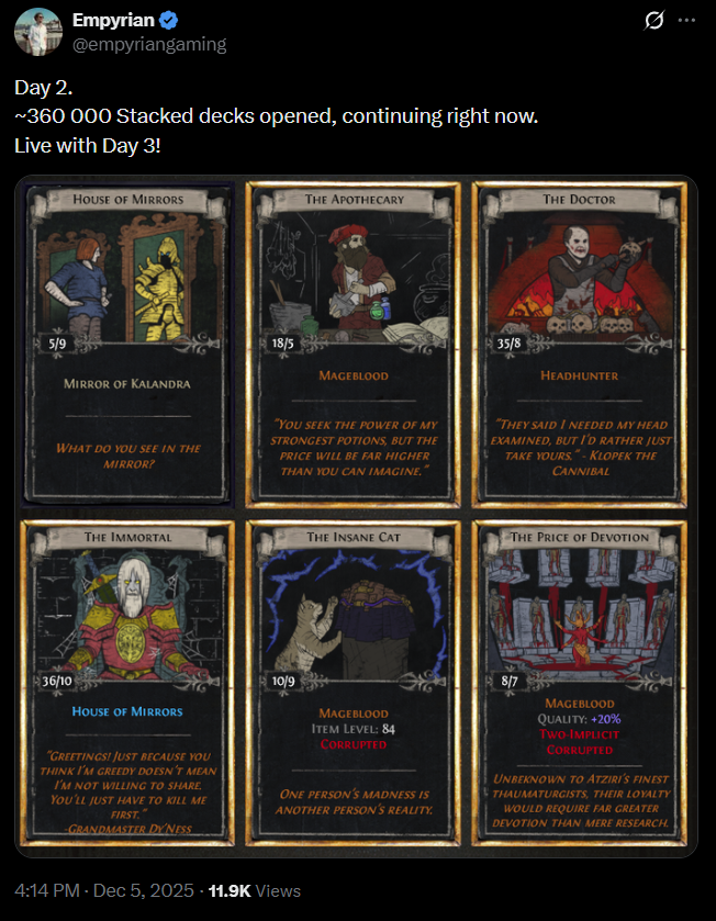 так поепитеки очкастого чмошника офк не смотрел да и спойлеры так что спойлерите вы пока я добрый чо там как и ожидалось бездарная хуйлуша перенесла из пое1 механиканейм+механиканейм т.к сам ничего не умеет и все что бpитый сотворил пиздит понерфила все что только можно классы спеллы паксайзы лут показало саппорт паки спасибо за вашу поддержку терпите ну а мы в закат так было чине