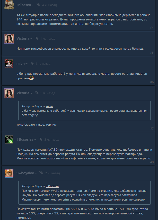 >>50520931 >Ебанный рот этого казино. Неткод кал говна просто. Не помню ни одной части БФ, чтобы враг мог из-за дисинка вырваться из анимации ближнего боя. Вероятнее всего в игре дисинки расположения игроков настолько сильные, что они в пределе метра могут находится от фактической позиции игрока на его клиенте. Я бывало подстреливал игроков, стреляя не в модельку, а позади модельки. Предполагаю несколько вариантов. Фактический тикрейт не стабильные 60гц, а для каждых событий, синхронизации отличные от 60гц и могут проводить обновления 10 раз в секунду. Либо в игре проблема с интерполяцией позиции игроков от движения. Оптимизация игры для Xbox S и порезали к хуям ключевые моменты сетевого кода, дабы все в 10гб ОЗУ влезло. Настолько плохого сетевого кода даже в 2042 не было, а там 45гц сервера.