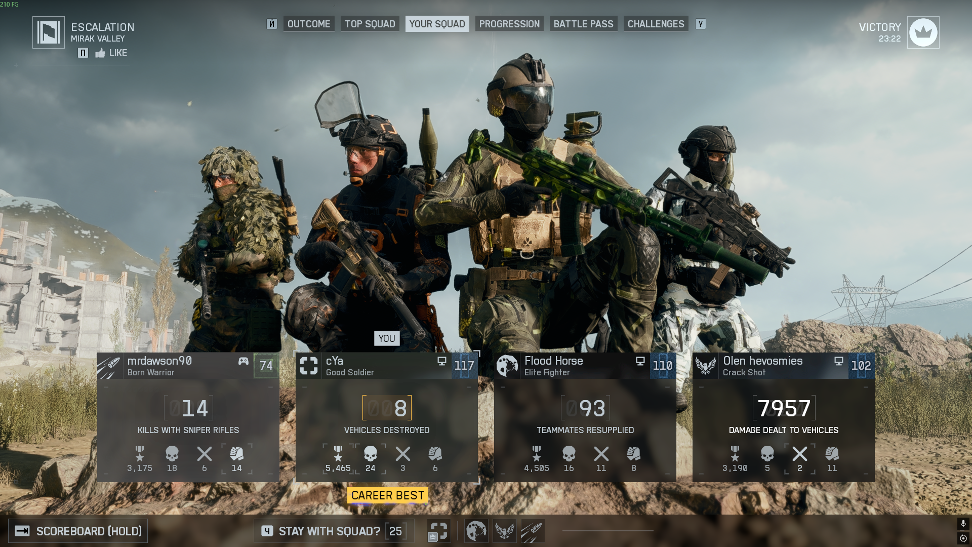 >>50539654 Тупо базанул. Награда за то что на опыте разъебал весь сквад, или выиграл дуэль с другим снайпером. И кошмаришь других снайперов. Но самый кайф когда вертолет кошмарит. И начинаешь на снайпере, по кд его помечать, а твои сквадники тоже шарят и из бпм ракетой хуярят по нему. Вкачал минискаут до 50 лвл и добро