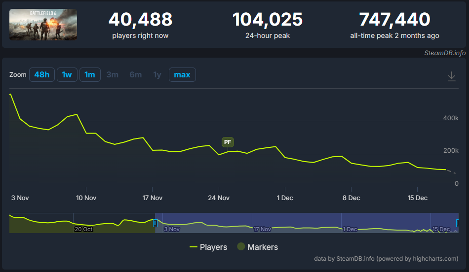 Короче дайсы в очередной раз обосрались нахуй. Дауны разрабы не смогли, не заготовили контент, не так сели. с 800к онлайна он просел до 60 за 2.5 месяца, это пиздец.