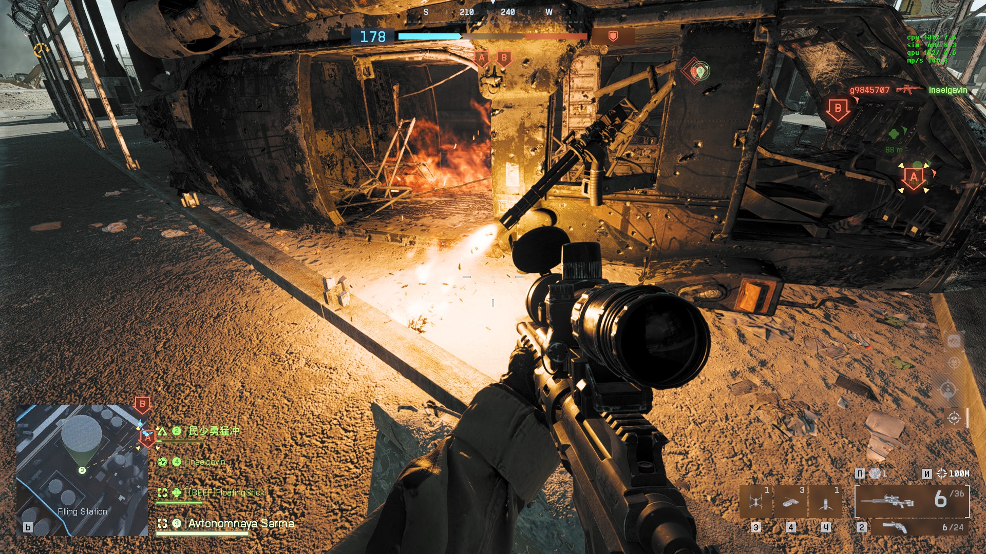 Кста на релизе спорил итт насчет имбовости маркеров в старых батлфилдах типа 3/4. Вот например в этой ситуации, будь у меня маркера как в старых игорях серии, то я б скорее всего всех захуярил в спину, а так тупо палил примерно в сторону врага потому что нихуя не видел и не знал где именно тушка прячется. Маркера олдфажные очень имбовая околочитерная хуета, в 6-ке же основная информация только с миникарты черпается.