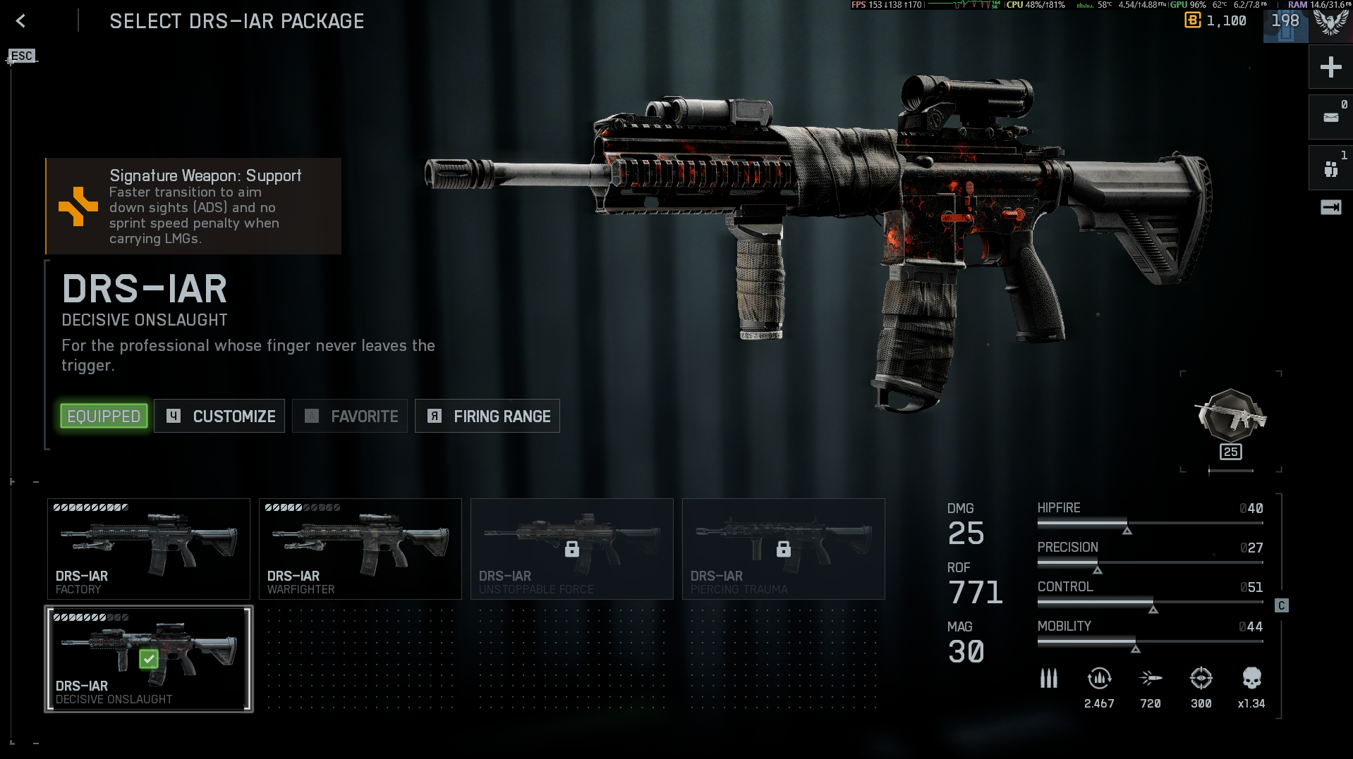Только сейчас осознал, что ассаултовская профа на штурмовки тупо не работает, потому что там не скорость к адс, а скорость смены ствола на винтовку, что бесполезно чуть более, чем полностью. Потом интереса ради пошел посмотреть а что там со сменой стволов, как оно работает?... А оно не работает. Там разница в кадр-два максимум. Причем максимум. На фоне серверного тикрейта и пинга, это тупо на уровне погрешности разница.
