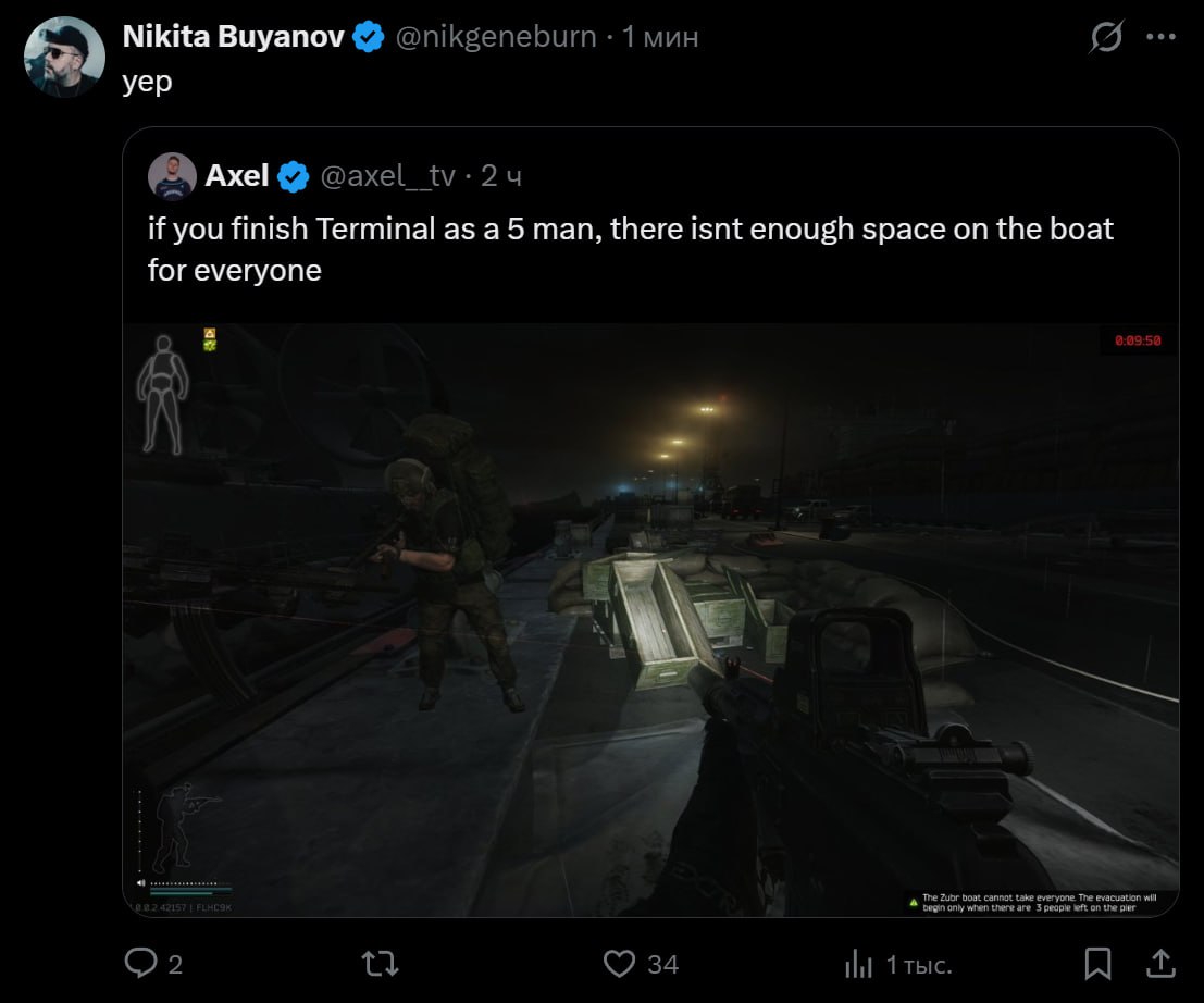 Оооо, мне кажется я НАЧАЛ понимать откуда столько визгов не тему якобы читерства того кто первый прошёл игру на лучшую концовку. Это организованная компания людьми которых корёжит от успеха таркова. Теперь всё встаёт на свои места. Пруфов того что этот китаец играл с читами - нет, но это не мешает ТАКИМ вот людям набрасываться на тарков. Теперь всё понятно.