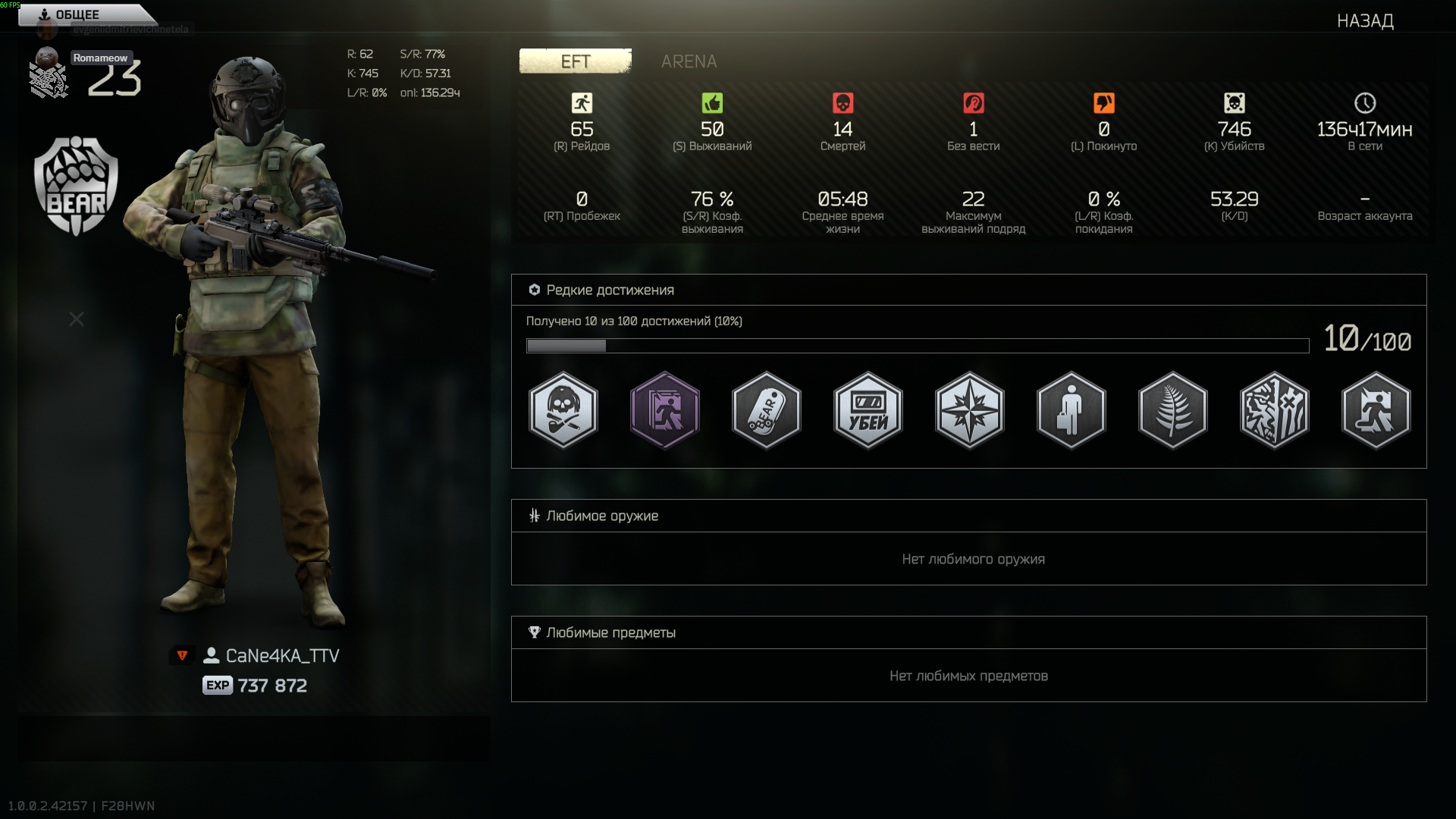 Погонял в арену. Прикольно вообще сделали. Реально пропали эти сборы по полчаса в рейд, чтоб откиснуть за минуту, ну и игру быстро находит, тоже плюс. Удобно, что чевык качается. Пизда как удобно. Типа я в рот ебал 40 минут дрочить тарков, чтобы на выходе сдохнуть от сбэу папоротника, и вынести касарь опыта за 40 минут дрочева. А тут за 15 минут 3к экспы выносится без особых проблем, и без СБЭУ-moment. Удобно, что есть готовые пресеты, которые как есть можно спиздить в тарков. Удобно что можно качать свой собственный скилл аима. По бабкам и их переносу - ну такое, скорее приятное новшество, чем киллер-фича, хотя я еще с переносом монет не разобрался, вики пишет что там есть вкусные бартеры у механика, посмотрим короче.