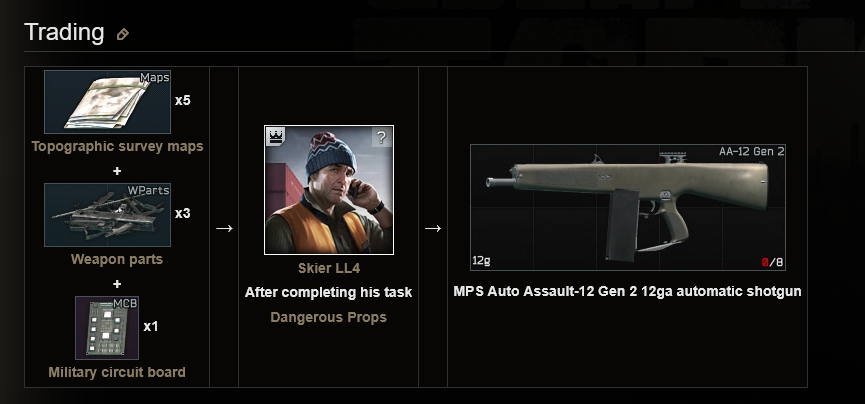 >>50524977 > Метабластеры, или просто пушки редкие? Просто редкие. Ак-308 вообще никак не купить и только добыть в рейде, например из ящика или с решалы, а АА-12 ГЕН2 это апгрейднутая версия ГЕН1 на которую можно ставить прицел(всё равно говно ебаное) и на который весьма мудацкий бартер после весьма позднего квеста.