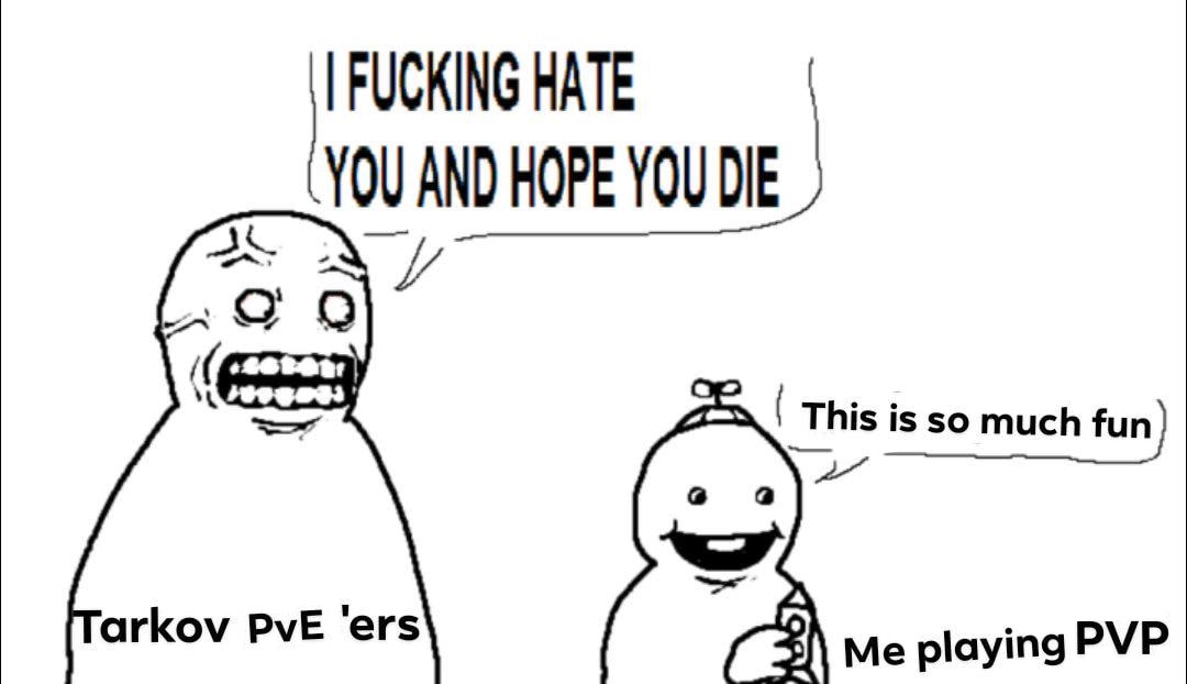 >>50527785 не надо мне продавать ПВЕ еще сильнее, я уже понял что там кайф и чилирование, а если надо то боссы каждую катку спавнятся и ебут в жопу, уже как нибудь обойдусь без ещё и чамсеров и сидунов в кусту ко всему этому. Как казуал с 7 стажем пвп Таркова, мне и в ПВЕ режиме стремно на карте находиться тк ботики тоже не такие слабые бывают, а свитовцы и вовсе веселуху устраивают. Уровень напряга как раз такой чтобы игра не заебала до состояния что её хочется уже дропнуть нахуй и пойти пиво пить вместо. Я впервые в ПВЕ на улицы таркова зашел и охуел как там ебут с гранатомета в очко, буквально бежал за 100 метров от базы ебланов и вижу как мимо моей жопы граната пролетела в стену. Не знаю чем мне улучшит экспириенс еще и пвп игроки, умирать буду с 1 секунды в матче? вкусно. Пве - круто. пвп - для тех кому хочется СБЭУ.