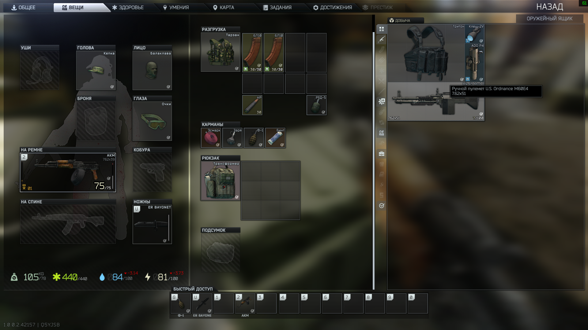 Спустя 16 часов игры сделал мой первый килл. Выход с таможни не смог найти. Пытался где общага. Вроде написано что выход был а я тыкал где лагерь и стена и ворота а там ничего. В итоге ушел на берег. Там в какой то деревне реснулся и меня убил чел. Почему то мп5 стал на одиночный огонь а не на автомат. Бейджик положил в подсумок