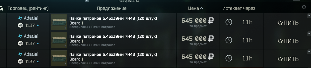 >>50537071 И что тут такого? В ПВЕ можно стабильно по 3кк говняка с эпицентра за рейд выносить, как раз на пару нормальных рейдов хватит. Ну или бегать на чуть более унылых 855А1, они меньше 200К за 100шт. пачку часто бывают. Или ты про то, что пачки по одной штуке выставлены? Тогда это вопрос к Бубиным списочкам, а не к продавцу. Продажа пачек патронов забагована.