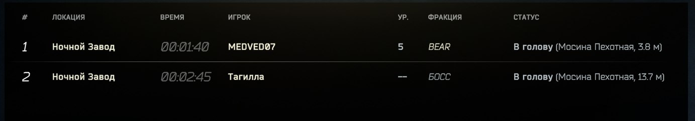 >>50538194 На tarkov dev пишет 48 но уже вроде как убрали требование к лвлу. Т.к. у тебя последний квест со сдачей 2ух ледиксов открывается на 45 где то. >что пройти сюжет как будто легче чем коллекционера закрыть и престижнуться Конечно легче, ведь тебе не надо с квестами егеря ебаться. >>50537823 С чего ты взял что он ньюфаг? Да и может он по 15 минут сидит и ждёт пока все чвк выйдут. Я таких челов по кд вижу когда бегаю в начале вайпа за стройматериалами на завод за скава, они обычно сидят на ночном заводе и фармят дикусов засев в каком нибудь тёмном углу.