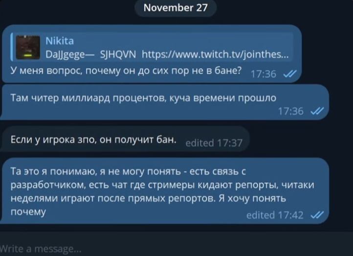 >>50528422 Братик. Он буквально на релизе говорил, что у них отдел который борется с читерами руками банит каждый день. РУКАМИ, понимаешь? Это уровень школьников на приватном сервере дэйза, а не крупнейшей игры с 100к+ онлайна. Естественно блять к его борьбе с читухами такое отношение, если вся их работа - это руками чекать читухов по репортам.