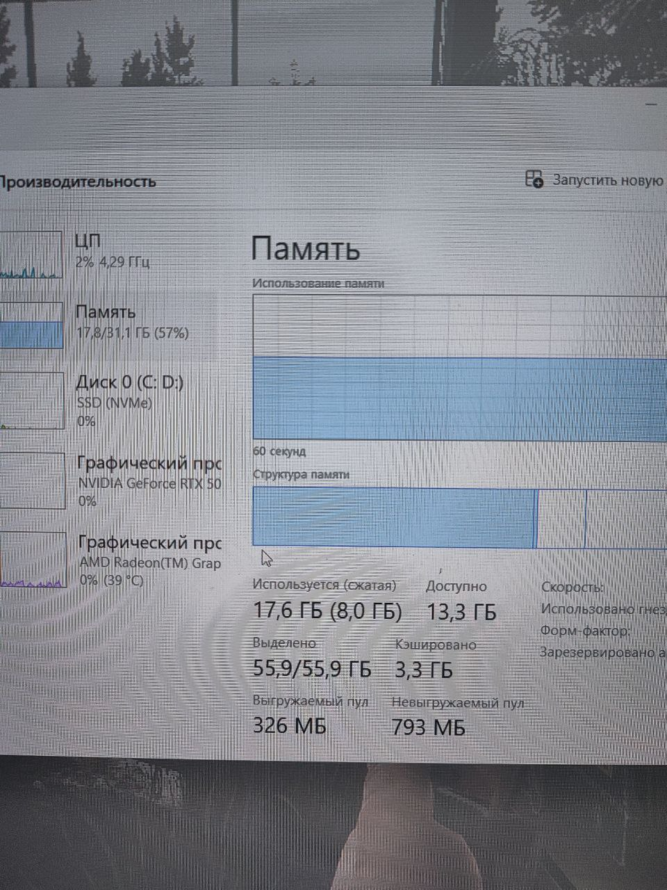 Объясните мне такую вещь. Комп AMD Ryzen 7 7800X3D 8-Core Processor (4.20 GHz) 5070Ti 32 Gb оперативы SSD --- Поставил все на ультра там (ну почти, всякие хабао сисяо не на ультра) Играю ПВЕ, 110 фпс, меня все устраивает. Но вот какая проблема - озу течет и в какой то момент игра просто вылетает. Точно могу сказать что это происходит на карте санаторий, через минут 20-30 игры - до свидания. В начале рейда занято около 18 Гб оперативы (учитывая еще браузер который открыт с парой вкладок). Когда игра зависла наглухо было занято где то 20 Гб оперативы, но увидел что в диспетчере в ВЫДЕЛЕНО 55.9/55.9 Я так понимаю игра сьела весь файл подкачки или что это? Чат гпт советует не выебываться и поменять с ультра настроек хотя бы на высокие. Кстати автоматическая очистка озу в игре настройка у меня стоит, правда она особо нихуя не помогает. Пару раз за рейд нажимал кнопку эскейп - таким образом загрузка озу снижалась. Это вообще нормально бля? или я долбоеб? Или комп говно?