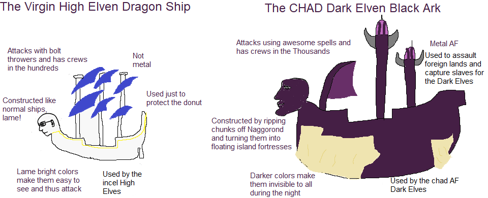 >>50528595 Пчел, в армибуке прямо написано, что во время гражданки заклинатели тёмных эльфов буквально откололи свои прибрежные замки от бублика, и так появились первые чёрные ковчеги. Держатся на плаву они буквально при помощи магии, с нарушением всез законов физики.