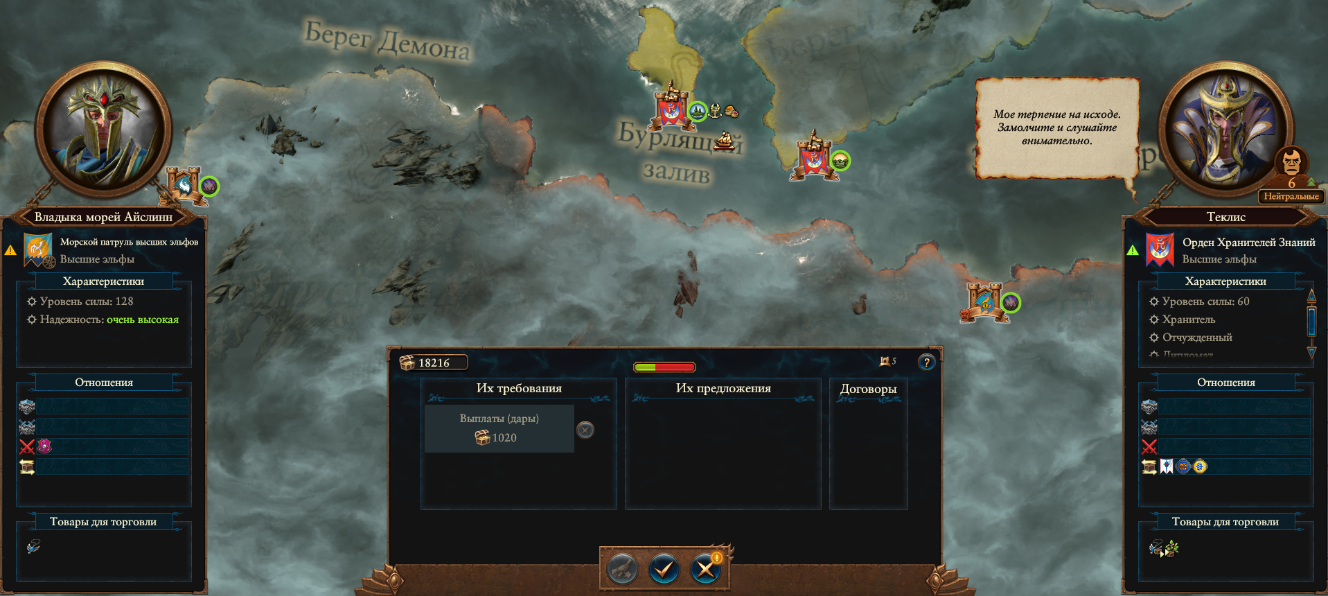 >>50525772 (OP) Анон, поясни за механику покровительства высших эльфов. Сколько не пытаюсь занять какой-то пост, при условии, что там нет "иммунитета" - ничего не происходит, только тратится влияние. Выбираю лорда за Айслина, выбираю город, жму на кнопу - очки уходят, поста не приходит. Или я дурак, или же какие-то моды его ломают?