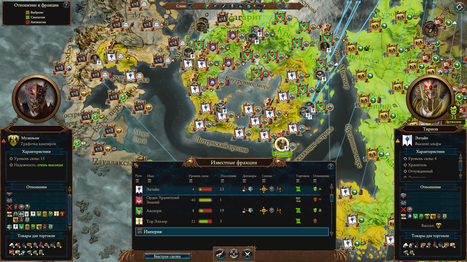 >>50528846 Во время хода АИ ставишь на паузу наверху экрана и устанавливаешь параметры отображения союзников, врагов, нейтралов, или отдельно для каждой фракции. Скорость и тип камеры отдельно для лордов и героев. Или можно жмякнуть на быструю перемотку рядом с паузой, но тогда пропустится всё, но так можно пропустить стэк врага в тыл; это так же помогает, если игра на чьём-то ходу крашится.