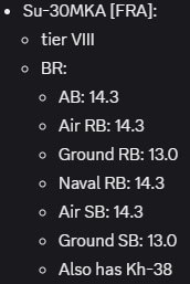 >>50538093 Не, это пролонгированная модернизация типа, сначала улучшили радар, потом поставили ирбис, в 23 начали ал-41 и какую то сетецентрическую систему связи(в игре похуй) и т.д. Могут тупо помойный клон за 420к ламп дать, а могут почти су-35, потом в репортах этим пидорам не докажешь, ибо с мкм самодурство превысило все мыслимые пределы, нахуй нужны репорты, если что хотим вводим, а что не хотим нет, + клоунские аргументы без четкой позиции по вопросу.