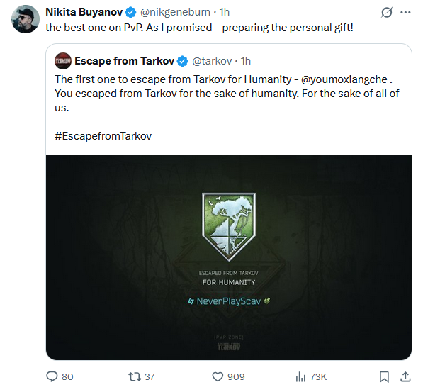 Если вы завершите «Терминал» группой из пяти человек, на лодке не хватит места для всех. — В углу появляется уведомление, что «лодка не может взять всех. Эвакуация начнётся только тогда, когда на пирсе останутся 3 человека». Аккаунт axel__tv в Х Босс Battlestate Games Никита Буянов отреагировал на публикацию и коротко ответил: «Ага». Так было задумано разработчиками Escape from Tarkov. Лодка может спасти троих, а оставшиеся игроки после истечения таймера погибнут со статусом «Пропал без вести» — им придётся начинать рейд сначала.