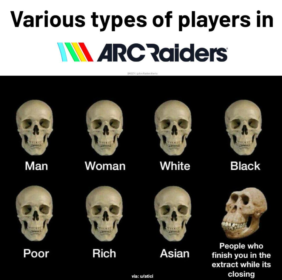 ARC Raiders – это сетевой кооперативный шутер от третьего лица, действие которого происходит в постапокалиптическом мире, где игроки сражаются с механическими захватчиками. Игра представляет собой шутер с добычей и эвакуацией (extraction shooter), в котором вы в одиночку или командой до трёх человек отправляетесь на поверхность, чтобы собирать ресурсы и выполнять задания. Разработчиками являются "Embark Studios", известные по онлайн-шутеру The Finals. На сегодняшнем заседании государственной думы г. Сперанска совет рейдеров подписал указ о МОРАЛЬНОМ ПРАВЕ добивать всех нокаутированных на точках экстракта. Каждый отписавшийся в этот тред получает полное моральное право на вышеуказанные действия. Переходим к другим новостям Ржавого Ремня. 16 декабря ожидается обильное выпадение новой карты со снежными осадками. Сперанские метеорологи рекомендуют утепляться и носить тёплые шапки-ушанки, дабы избежать переохлаждения. Помимо этого, администрация Сперанска утвердила гос. пошлину в 1.000.000 сперанских рублей за 1 скиллпоинт в случае, если Вы собрались отправиться в экспедицию за границу Ржавого Ремня. Количество дополнительно получаемых скиллпоинтов ограничено пятью, поэтому местные горожане рекомендуют иметь на счету сумму не менее 5кк для наибольшего профита.
