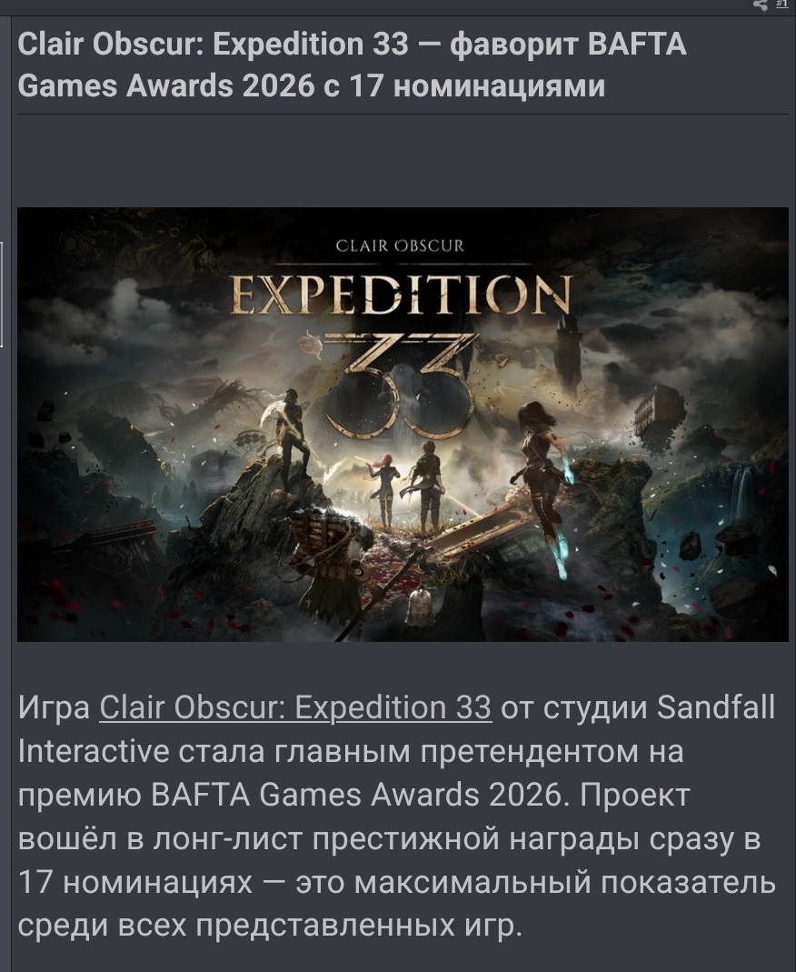 ❗️Clair Obscur: Expedition 33 стала самой титулованной игрой за всю историю