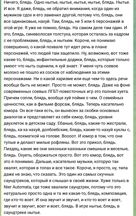 Какую же гигабазу выдаёт тень Клеи после прохождения башни. Получается кто писал персонажей намеренно делал их такими долбаебами, но с полным пониманием их ебанутости и адекватной разумисткой в виде этого диалога-монолога.