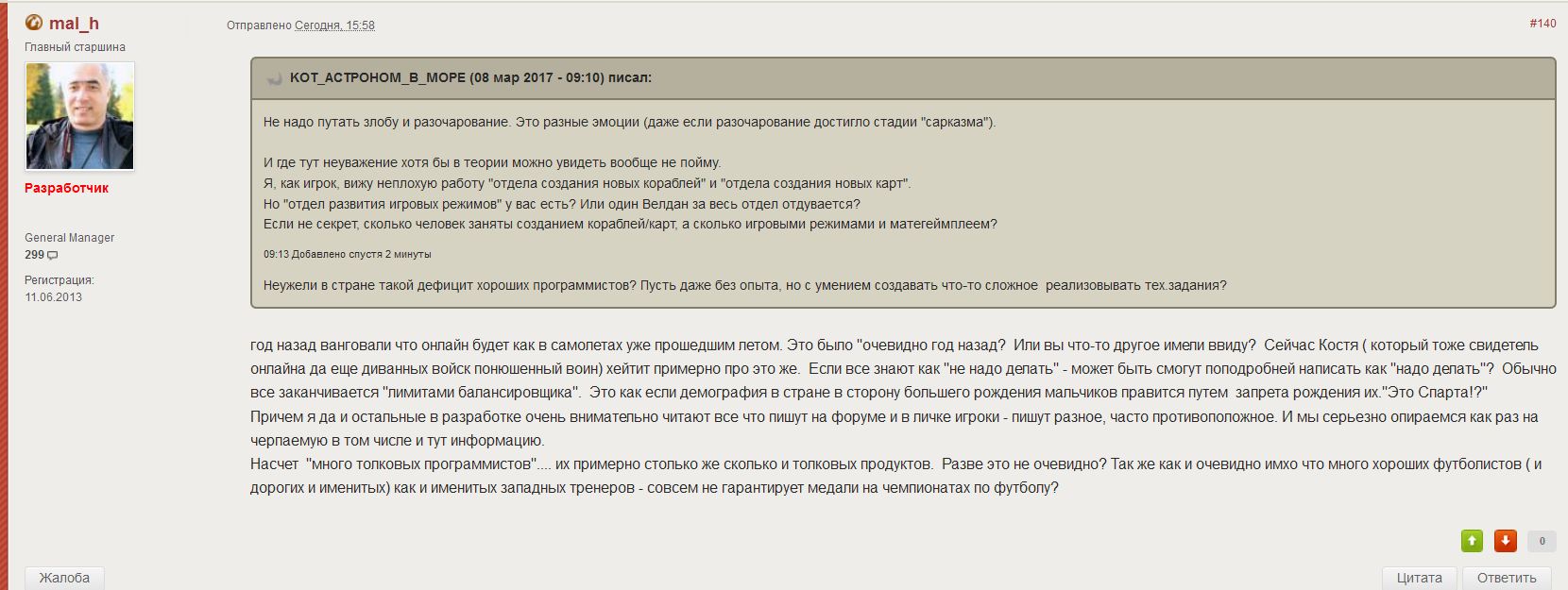 Я, если что, его не оправдываю, просто форумная мочухня прям откровенную неадекватность демонстрирует по сравнению с, при том, что на форум я может несколько раз в год рандомно заглядываю. Посмотреть хотя бы на уровень исполнения демедж-контроля в топике про Киберславу.