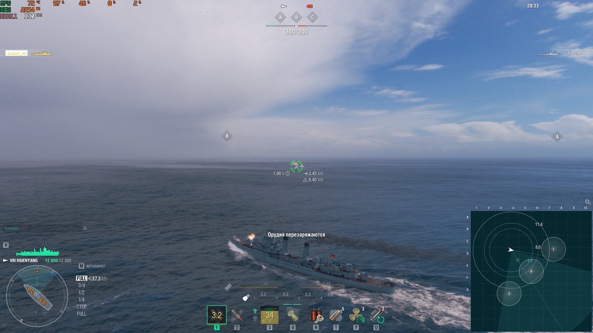 А вот забыл самое главное. Новая карта, ни разу не играл на ней. Это полная жопа. Куда бы я не поплыл меня везде простреливают с 2-3 направлений. Это полная жопа. Куда идти линкору на этой мопе?