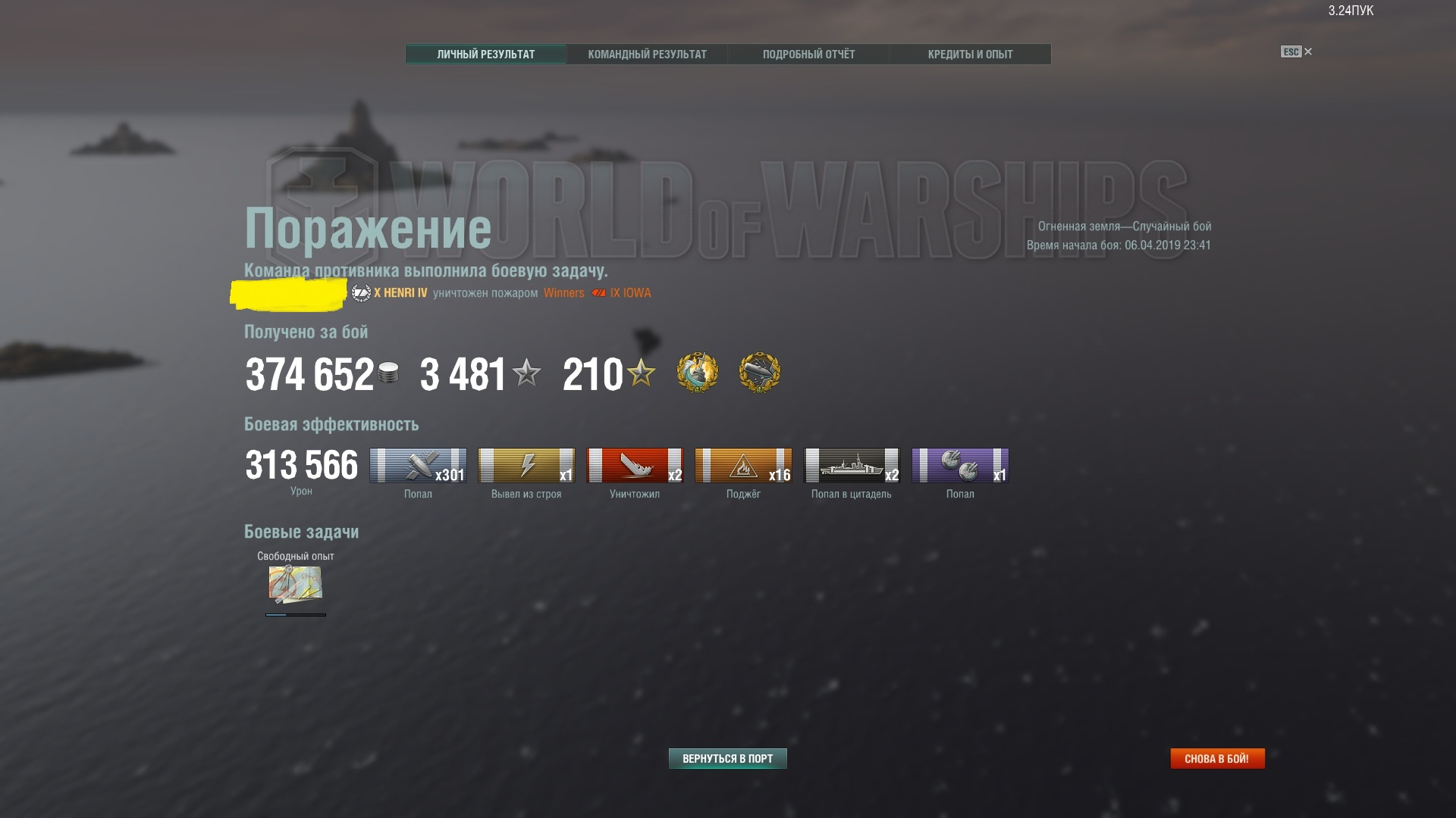 Остался один против комми, тулсы и фуловой монтаны на десерт. Комми забрал с залпа гк, тулса подкралась хуй пойми откуда, но была обоссана из ПМК. От фуловой монтаны убегал из бухты роняя кал с 20к хп. Думал встретимся за островом, но эта хуета на боте поплыла за мной, не догнала, в итоге вышел ей в очко с другой стороны и хотел либо расстрелять вблизи, либо потужно забрать с собой тараном, но время закончилось.