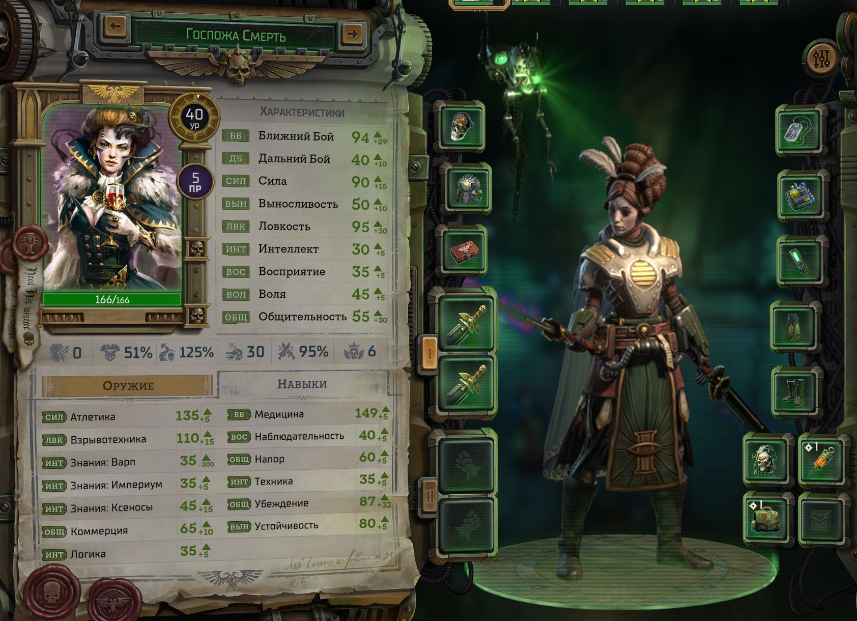 Ну поставил я последнюю сложность, и чё? Все так же враги разлетаются в первом раунде, даже не дав походить всем персонажам и даже с каличами в отряде, которых я беру только на их квесты. (Сестричка Аргента с чокером на макс инициативу ебёт, хех). Сегодня вечером видос запилю опять. Госпожа Смерть