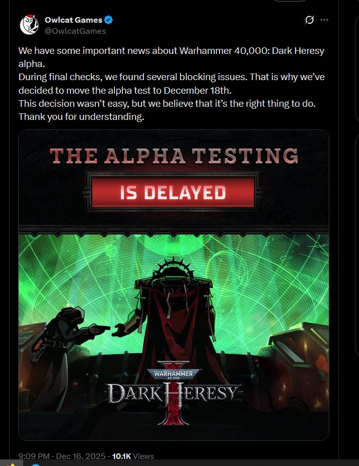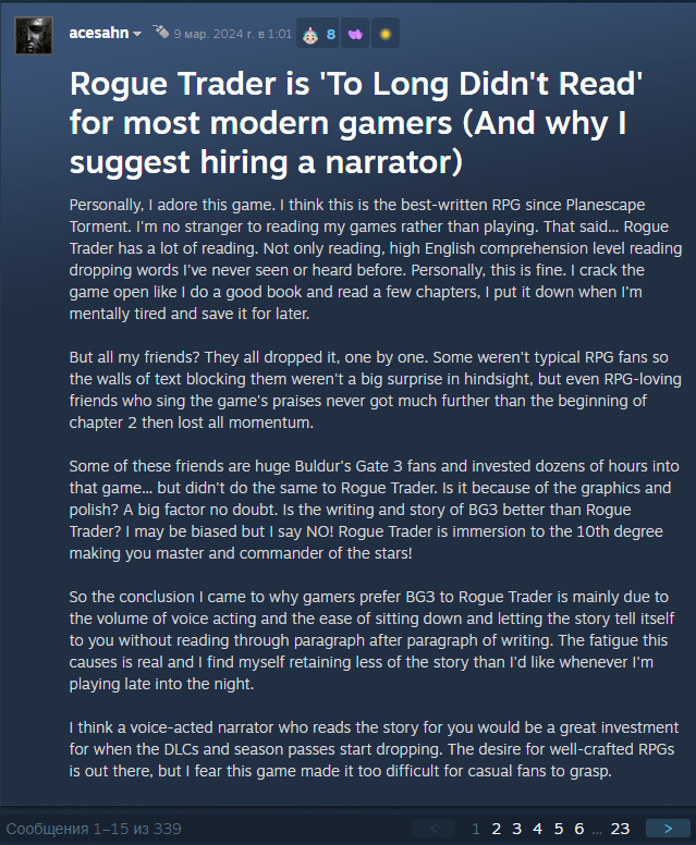 Зашёл я значит недавно в дискорд канал owlcat почитать мнения насчёт дарк хереси да и вообще посмотреть как обстоят дела.