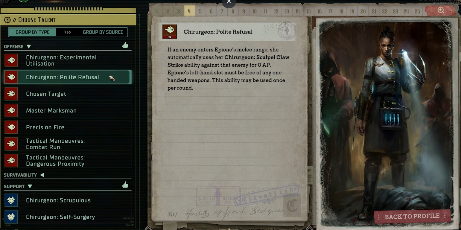 Если хочешь разнообразия попробуй другой класс/предысторию: арбитр/воин и псайкер/солдат дадут гораздо больше разнообразия, а там и ветки анлайментов сможешь проверить.