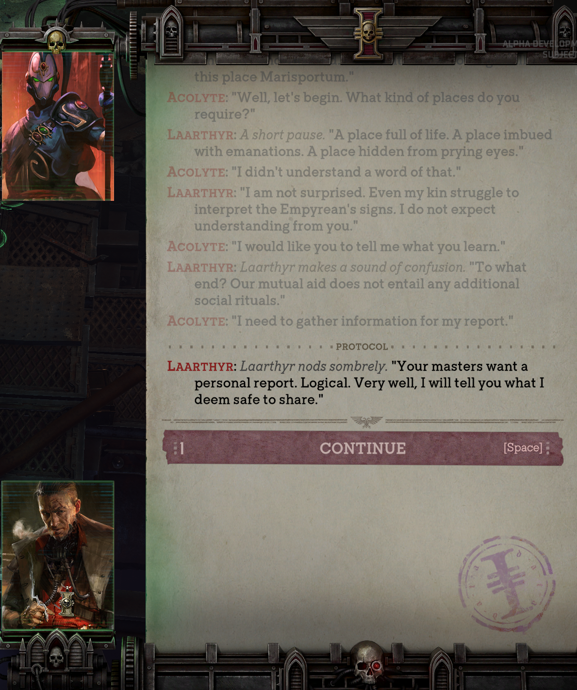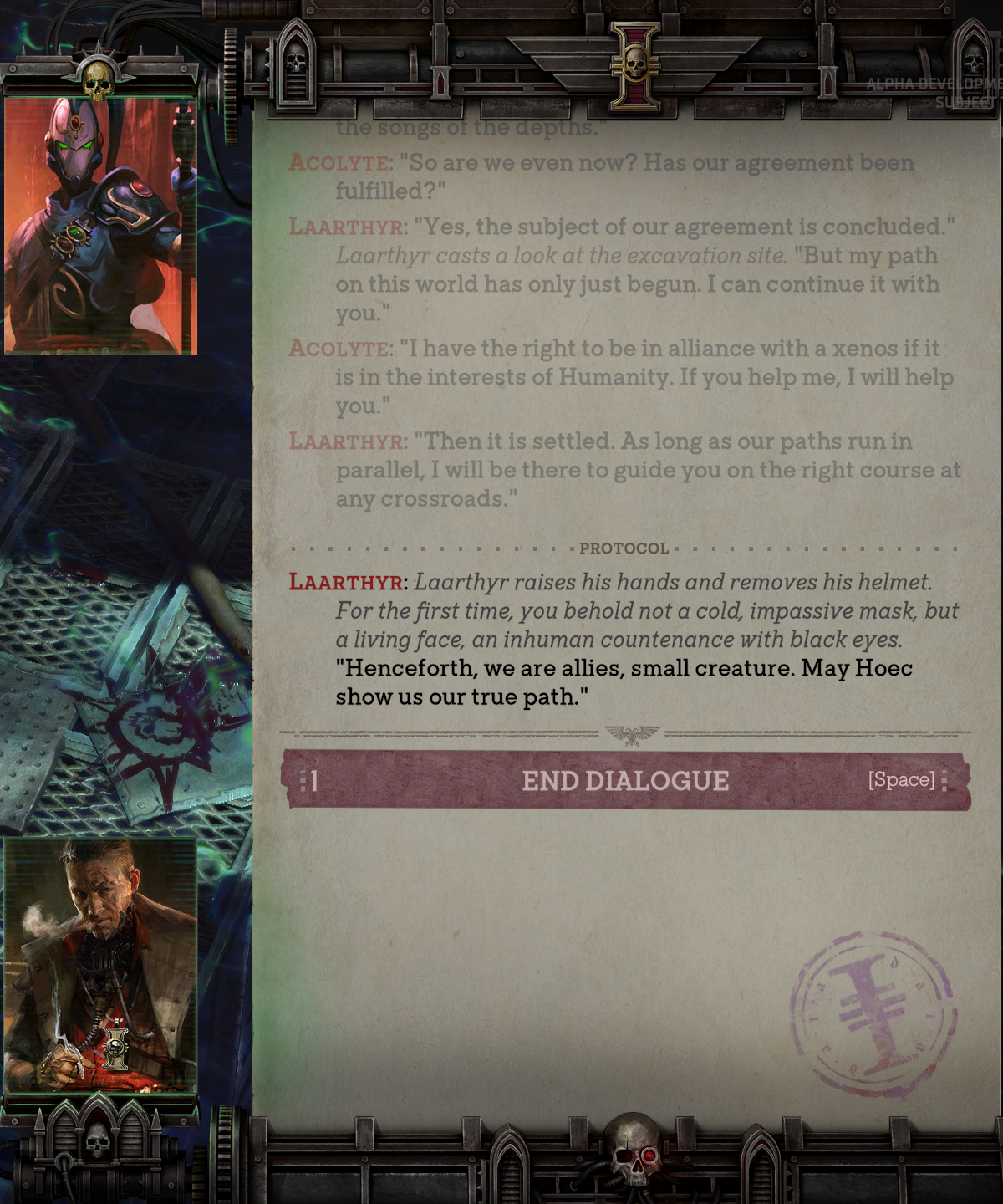 КАЖДОМУ ВАХАЕБУ, ВАХАФАНУ, ЗАЛЕТУХЕ И ЗНАТОКУ ЛОРА ЧИТАТЬ ВНИМАТЕЛЬНО: Совокоты известны крайней разношерстностью своих сюжетов — в одной игре может сочетаться как аниме/трансухи/соя так и самые базированные персонажи. А также известны своим вольным отношением к сеттингу: с Вахой это может вызвать горение жоп. Воспринимайте Rogue Trader как неканоничное произведение или фанфик. Хотите 100% следования "канону" — идите почитайте рулбук.
