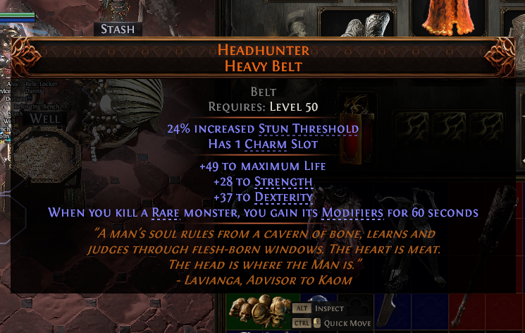>>50570097 Прайсчекер тебе в помощь. Постепенно поймёшь что ценится, а играя сам на разных билдах и покупая/докрафчивая шмот - научишься и без прайсчекера большинство вещей определять и видить их потенциал.