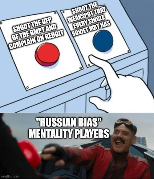 Мало того что добавили привода говна на меркаву так еще и бмпт калычи просто едут на +w и ебут все и ты даже выстрелить не успеваешь как в тебя все это говно летит с птуром и прочим говном, ниимба так сказать.