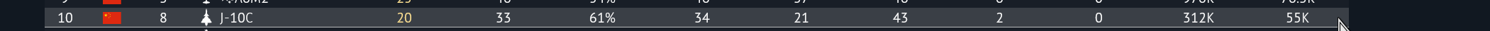 Впрочем все равно нельзя сказать что J-10C можно посоветовать - тупо из-за ракеты. ПЛ-12 лучше Амняма только тем, что от неё уклониться сложнее. По сути 120А с 13.0, лол, на 14.3 приходится летать.