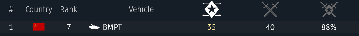 >Это не ориентир на кд, а скорее уж на винрейт Ну так-то да. Просто, опять же - КД из такой штуки ещё с горем пополам можно выжать, а КВ нет. Оно сложнее набивается, да. Но тут "сложнее" работает именно в плане того, что, опять же, на этих БМП очень сложно попасть именно в такую ситуацию, когда они попадают в идеальные условия. Ну плохо подходят всякие "Пумы" под реалии тундры, ну хуй ты что с этим сделаешь. Просто плохо и всё тут. По крайней мере, в плане чистого КД.