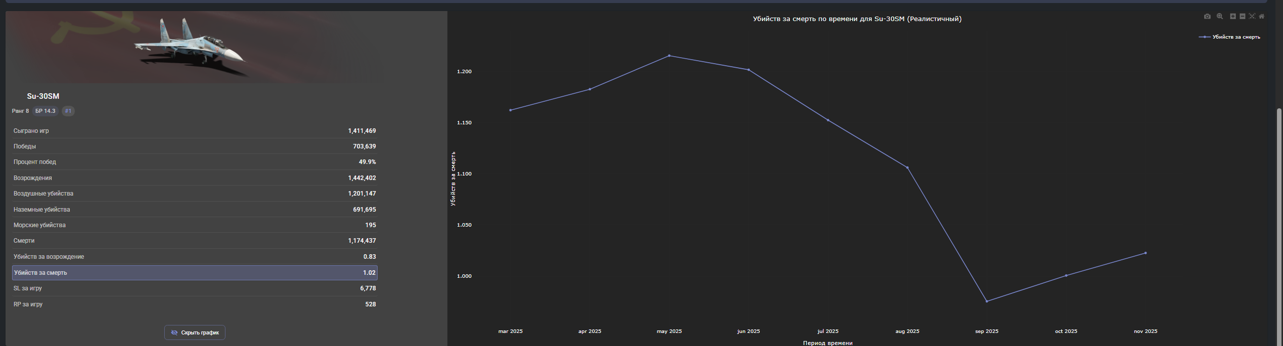 >>50595922 Потому что кв не наабузишь, и любое ее увеличение зависит только от твоего скилла. С кд ты лишний раз остаешься за камнем, чтобы не сдохнуть и не вписать лишнюю единичку в свое кд, с кд ты можешь совсем ебануться и сделать себе двадцатку, сидя за респом и отыгрывая по 1-2 фрага за бой, зато кд20. А с кв хуй так сделаешь. Да, одноресп нужен, но он итак нужен, хули. К слову на общий-то никто не смотрит, так что достаточно просто не брать дублеры и играть в сетап, тогда всегда можно вывалить свой первый танк из сетапа с лучшим кв эквивалентным одноресповой игре и все.Играешь ты на статку или нет, одноресп база, тут просто удачно совпало. И все это понимают, т.к. в оправданиях любого танкиста первым же аргументом идет "ну я в многоресп катаю". Что подразумевает его собственное принятия того что каждый лишний респ будет хуже и хуже. Ну а если он хуже и хуже, то нахуй он нужен? >К/Д как показатель тоже кустодрочерский, но он хотя бы не мотивирует игрока постоянно, весь бой надрачивать на один-единственный фраг, который человек сделает, причём он за этот фраг будет трястись весь бой. Ты все перепутал. Кв как раз мотивирует тебя не надрачивать на свой фраг, а тут же попытаться сделать еще, ведь разницы между пересидеть с этим фрагом до конца боя и выжить, или попытаться сделать второй и умереть для тебя нет. Главное сделать фраги. Сделал второй? Отлично, делаем третий или умираем пытаясь. При дроче на кд наоборот, лучше сыграть 2\0, чем 3\1 или даже 4\1. Т.е. ты трясешься за смерть, а потому сидишь на пятой линии и ВЫЖИВАЕШЬ. >С ориентиром на К/Д можно выехать, взять точку, обосрать противнику фланг "Спайками" на, к примеру, "Фреччии" или "Пуме", не сделать фрагов но повыбивать казёнки (а сами танки выбьют союзники), и полетать дроном.Да, играть в "танк поддержки" это нихера не прикольно, но объективно это эффективно. В некоторых ситуациях, по крайней мере. В основном на инвалидных БМП с "Бушмастерами". Это не ориентир на кд, а скорее уж на винрейт. Реснуться на хуйне которая фрагов не сделает и в лучшем случае просто не сдохнет и точку возьмет кдшке никак не помогает, а скорее вредит, ведь чаще ты все равно сдыхаешь.