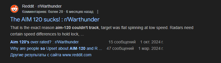 Ну ок, раз это не так, то вот тебе охуенная мудрость, известная всем желающим: 120с-5 и 120б это одна и та же ракета с разными движками. 120с-5 гораздо дольше сохраняет скорость, но и гораздо дольше разгоняется. Это наверное худшый арл для бвб. А в двб даже последний конч уже в курсе как задоджить арл, не говоря о том, что топовые джеты теперь имеют углы радара больше 90 градусов на сторону - могут нотчить и софт лок поддерживать. 120б в реалиях игры гораздо лучше.