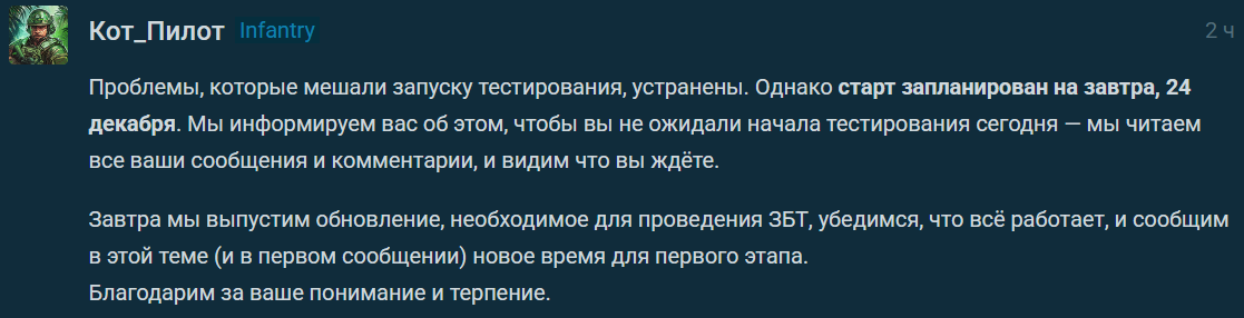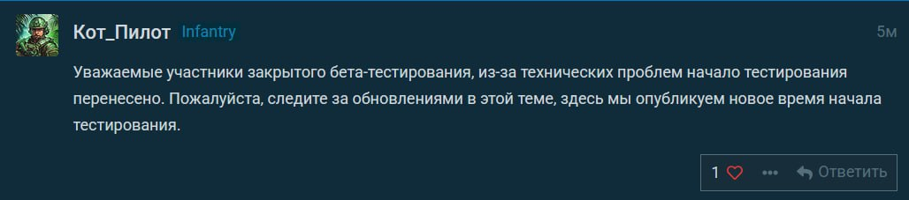 Почему кста мне до сих пор не пришло приглашение на ЗБТ? Они же понимают, что их чудорежим с пехотой провалится без моего ценнейшего экспертного мнения?