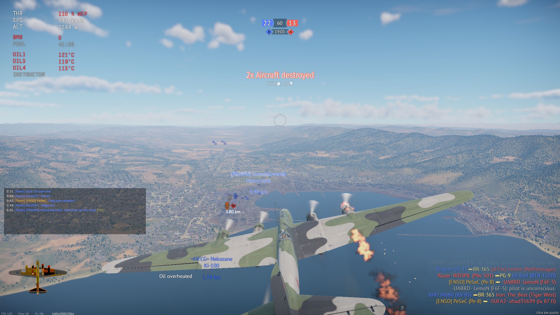 >>50584321 Марафонить надо на не премах и без прем акка, желательно на старом 20-летнем компе на ультралохе. P38 и f8f c ганподами - твой выбор. Смотришь всякую хуйню пока климбишь, ебашишь 2-3 фрага в лобовой, этого достаточно, дальше если пошло - добиваешь оставшихся и фармишь наземку, уворачиваясь от деревьев.
