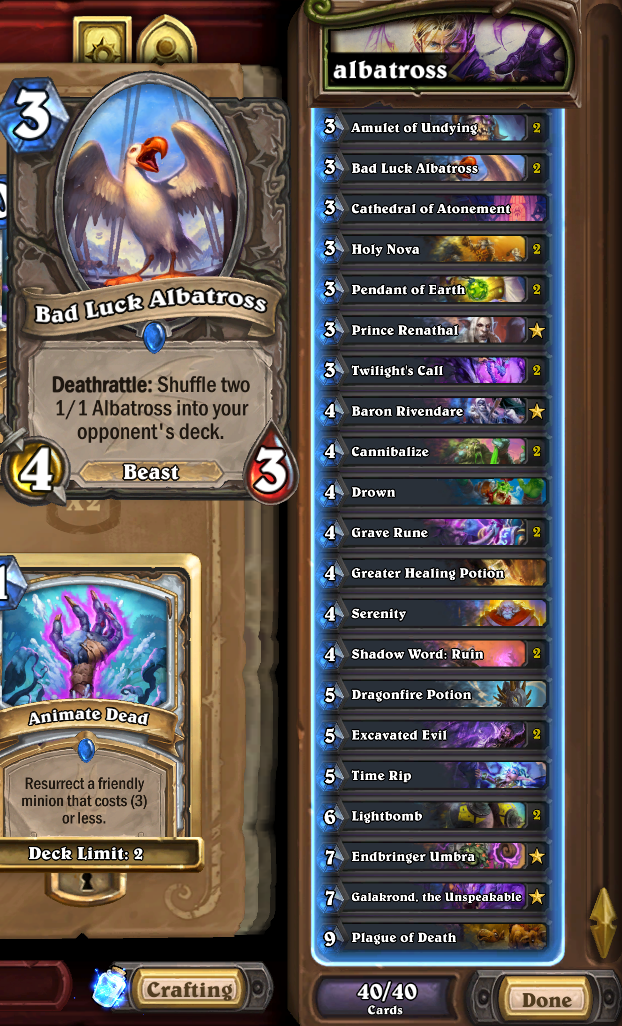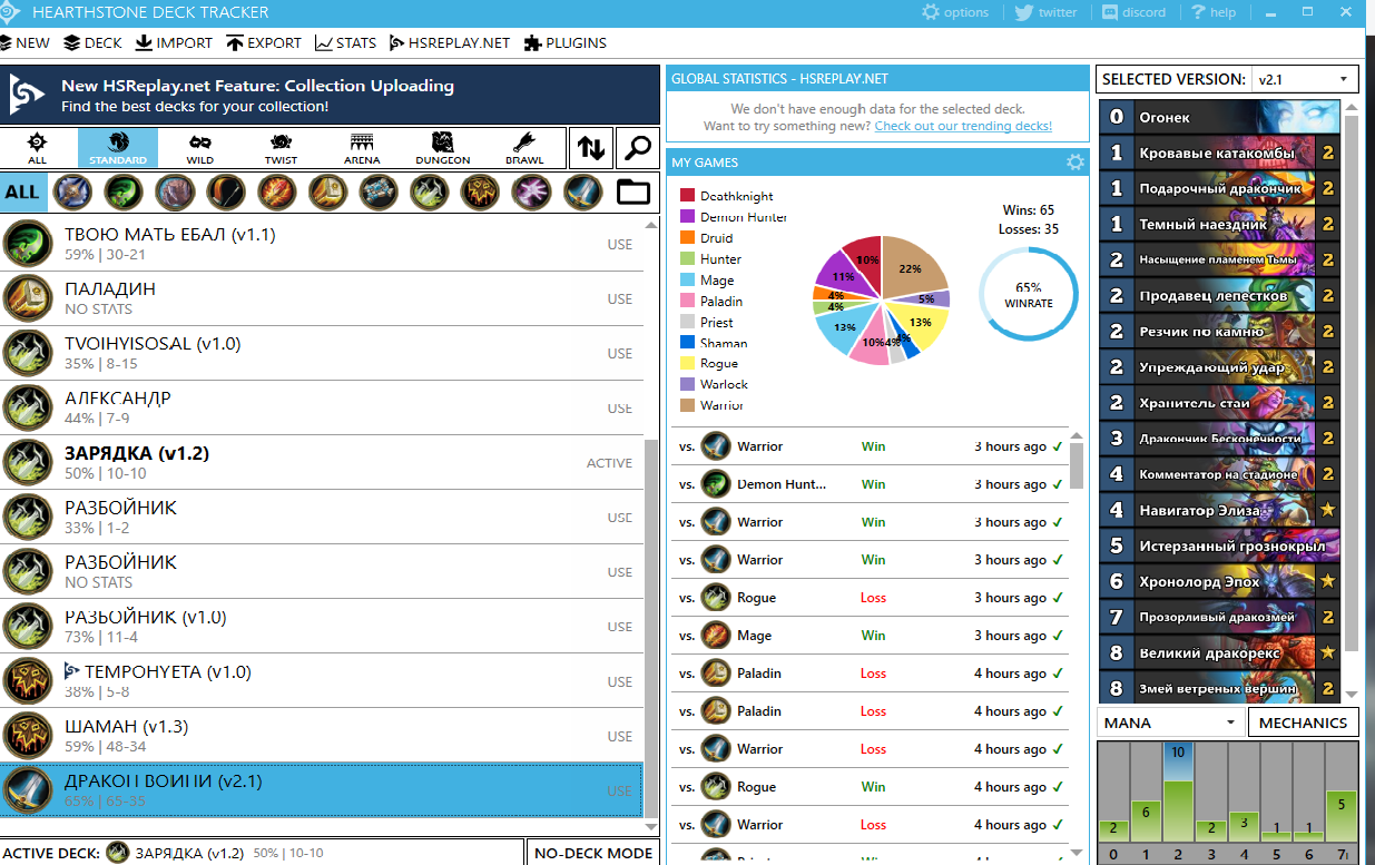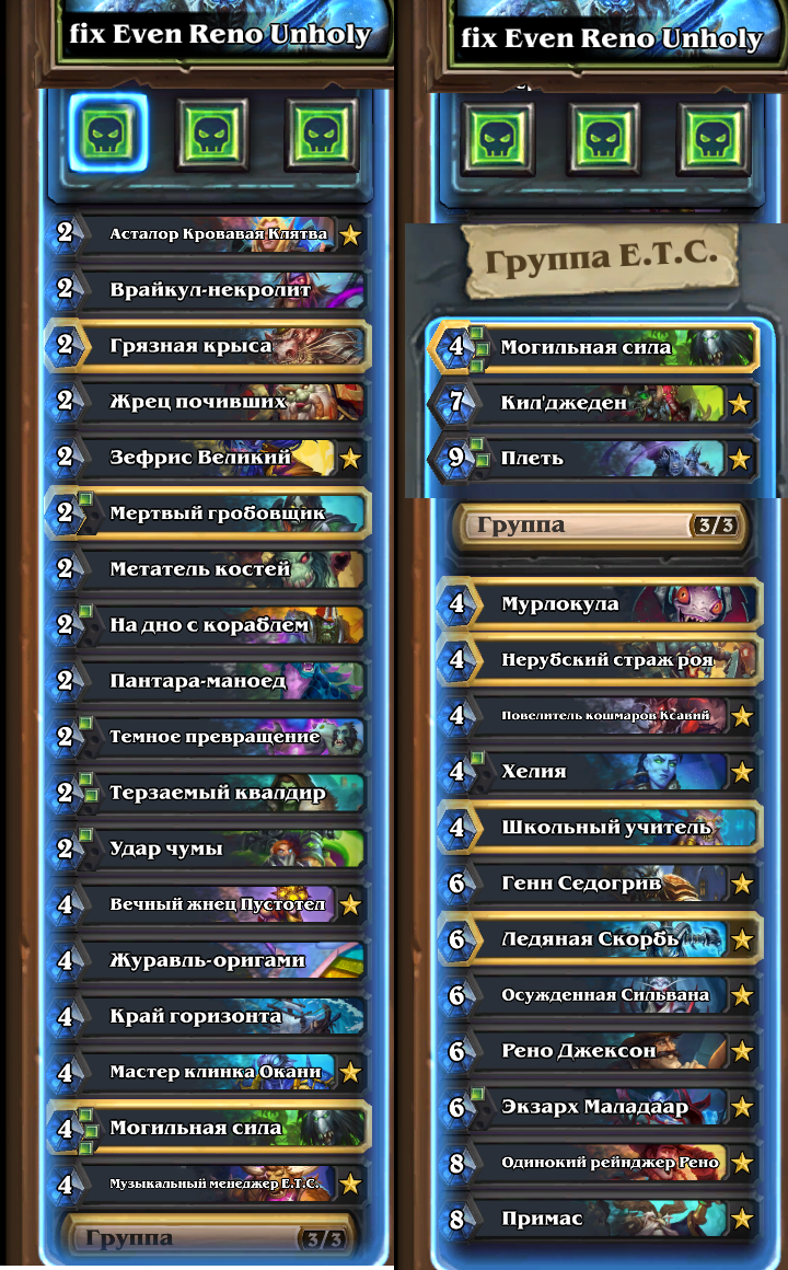 это я балуюсь с декбилдингом, но на ней играть достаочно приятно, колода часто хорошо себя чувствует в начале партии, справа последняя версия, а слева с более-менее статистикой