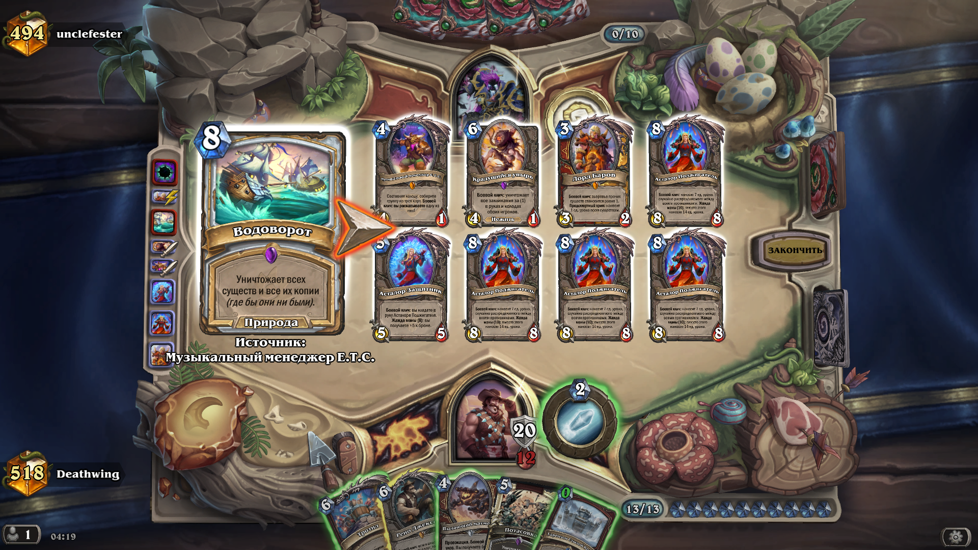 А тут чел на втором ходу сделал себе 12 маны ценой одной карты. Близзард - конченные пидорасы, в плохом, и возможно, даже частично хорошем смысле этого слова.